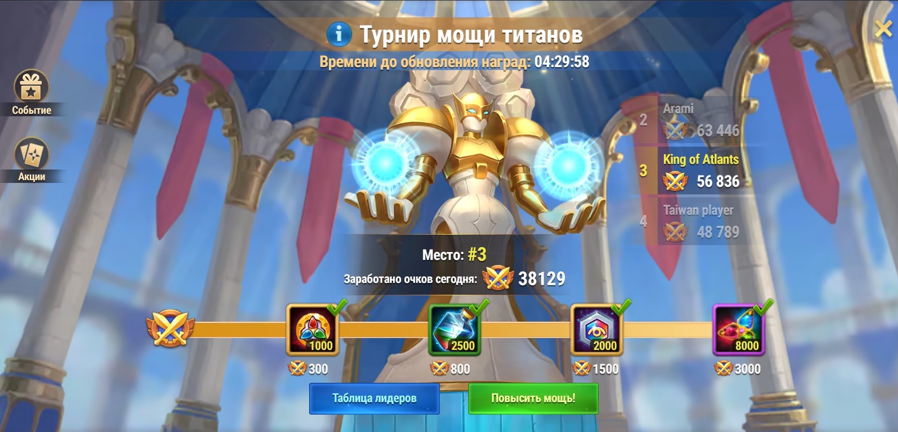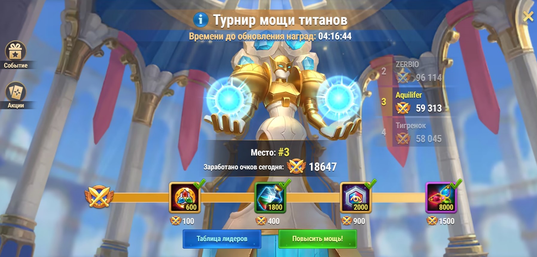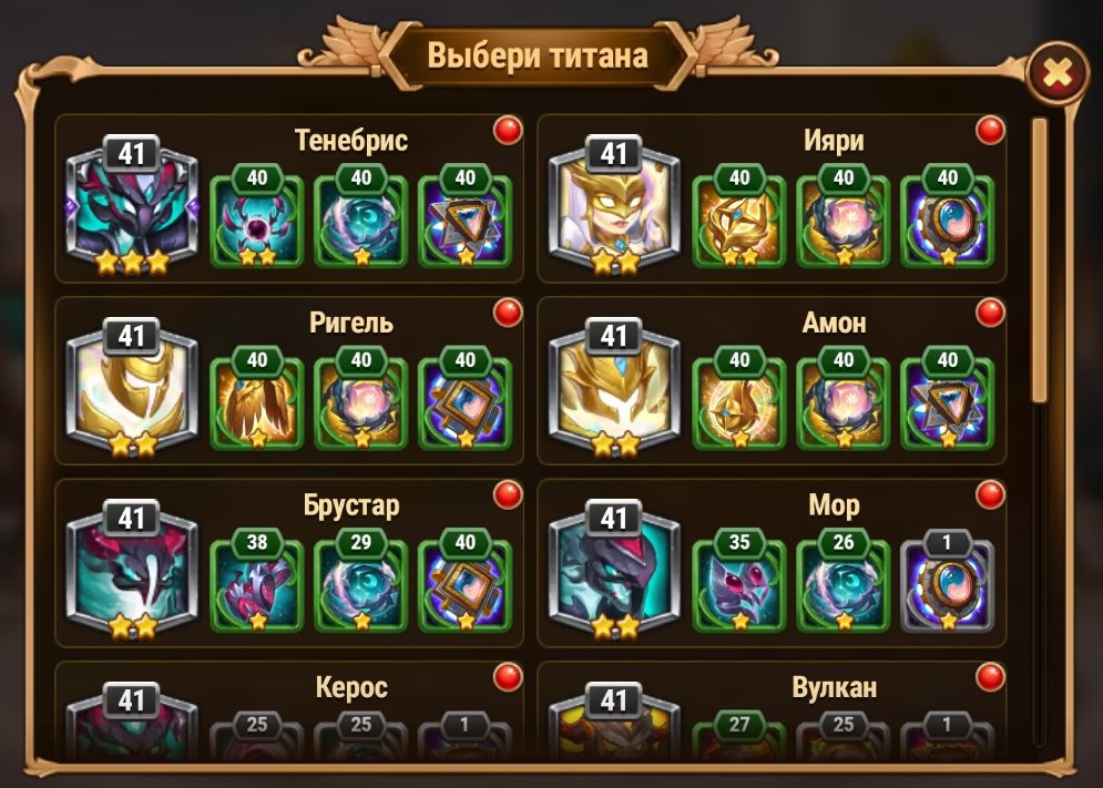 с достижением команды героев 60 уровня открываются артефакты титанов и поединки титанов. вот качнул слегка. артефакты с 0 до 40 уровня. сколько ввалил золота и изумрудов-страшно подумать.
