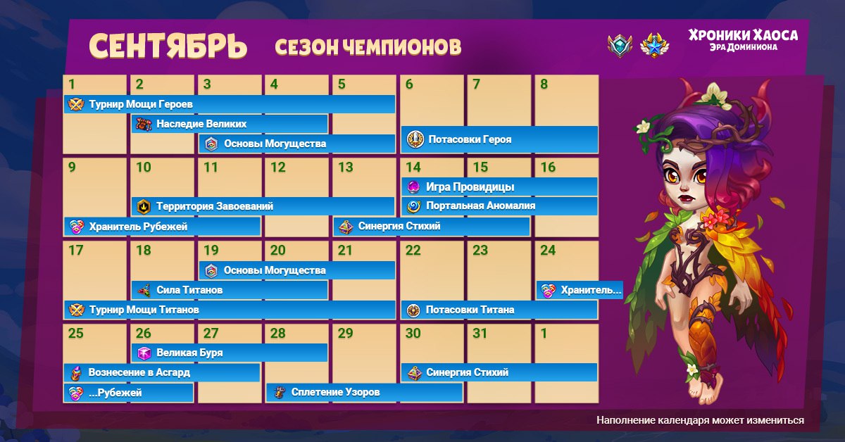 расписание сентября