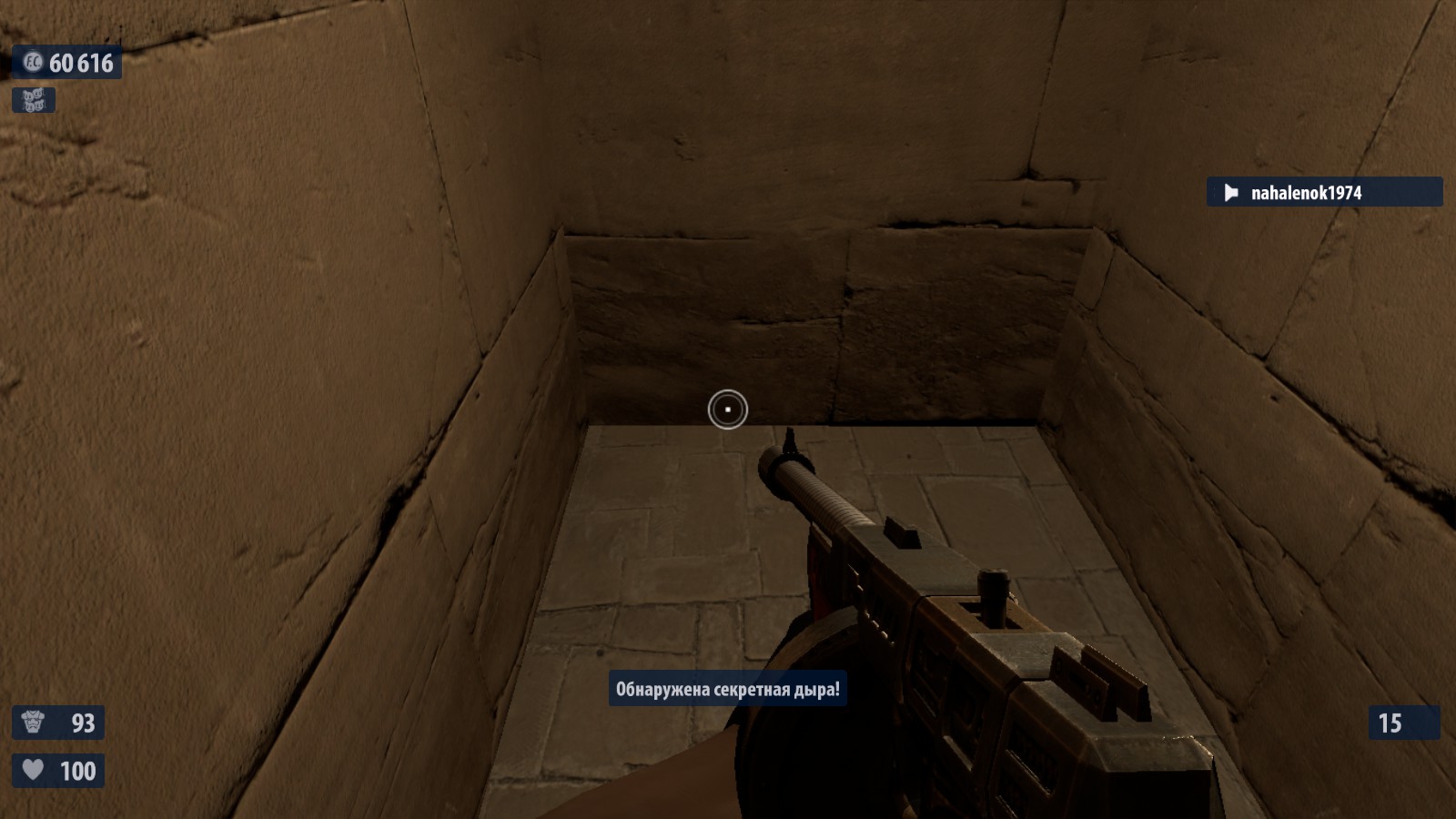 3) В комнате с болотными прыгунами, которых с этого момента я буду называть «лягушками», пройди к правой стене, ближе к входу в эту комнату, и дотронься до отличающейся по цвету прямоугольной части. Откроется помещение с секретным автоматом Томсона.