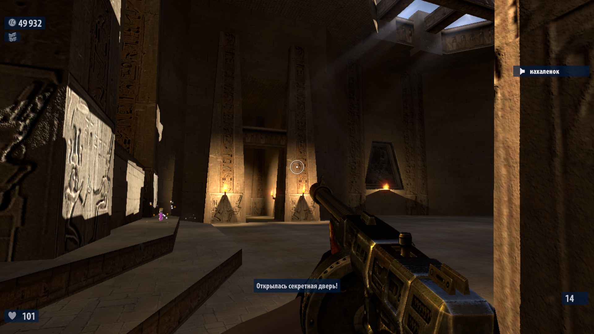 2) "Секрет шумовой атаки". Я точно не уверен, что надо делать, чтобы активировать этот секрет. Но это не сложно. В любом случае, как только войдешь из оазиса в здание и увидишь огромную статую в конце комнаты (первая комната в здании), подойди к ней. Там будет бутылочка со здоровьем (+10) и по одной пилюлей +1 слева и справа от постамента, на котором находится статуя. Возьми все три здоровья и секрет активируется. Убей механоида (если он появится) и взорви саму статую.