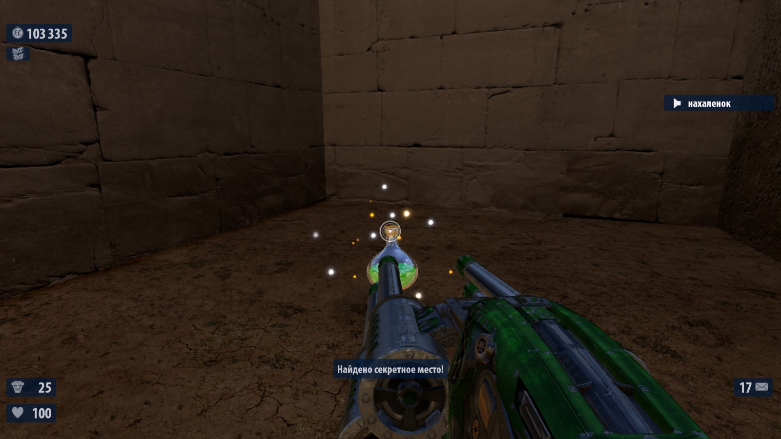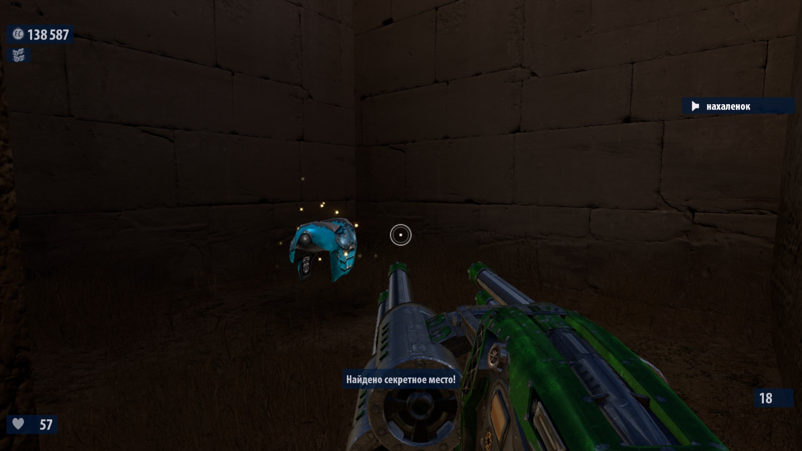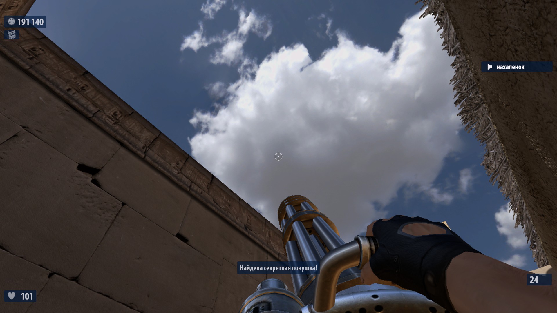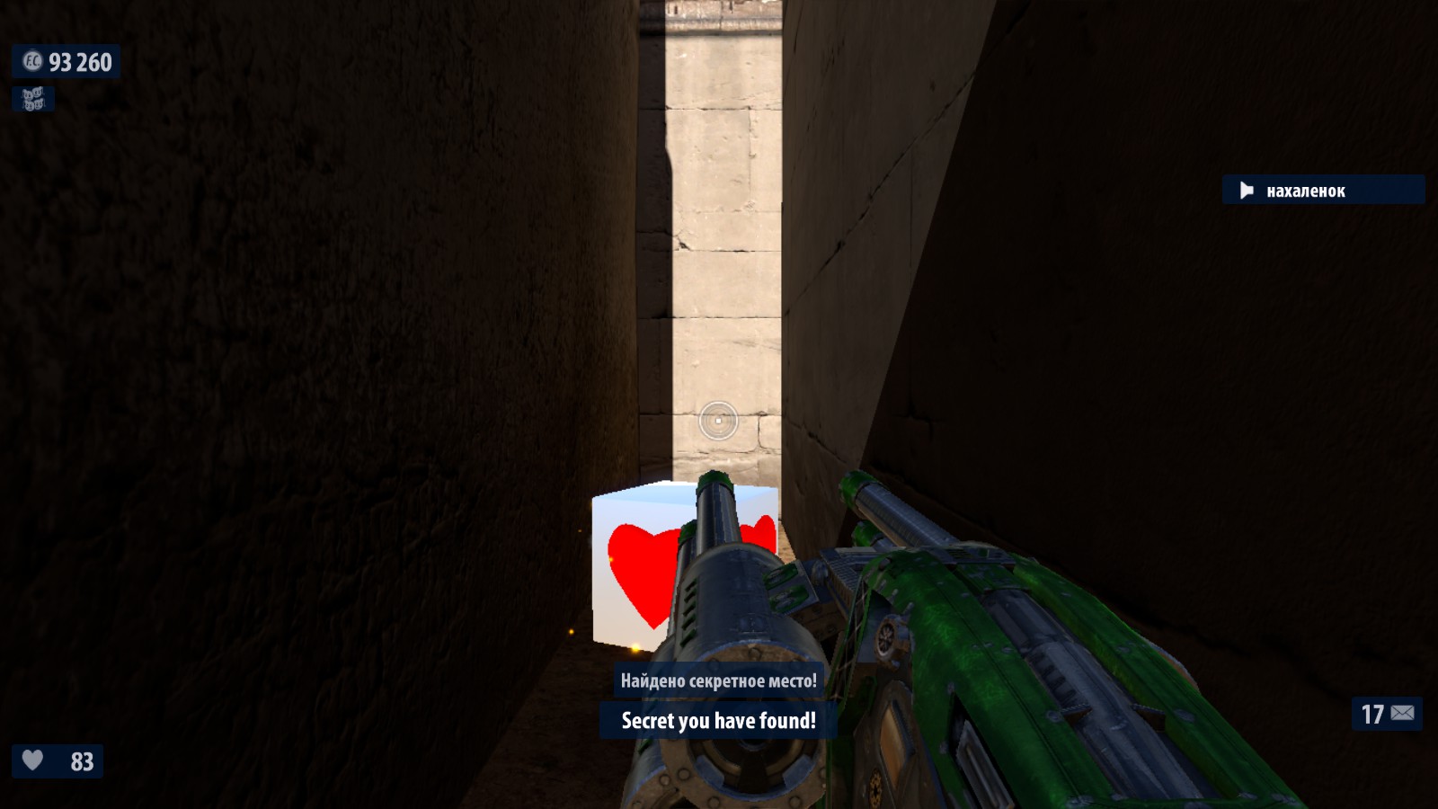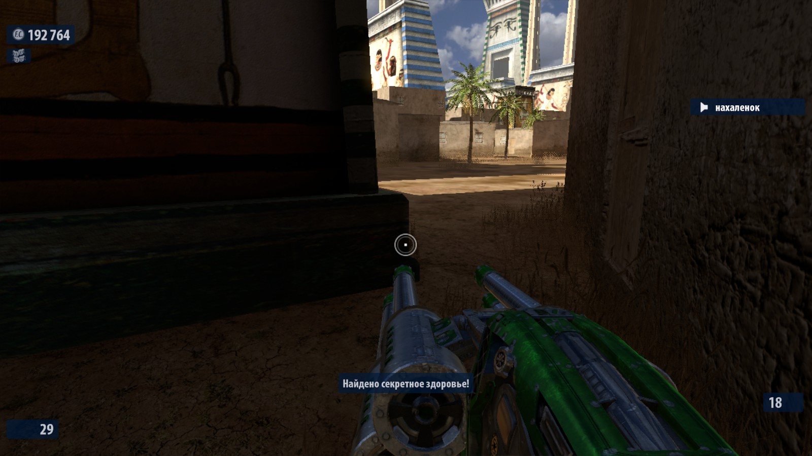 7) Перед тем как ты соберешься прыгнуть в канализации, встань с той стороны ямы, которая ближе всего к дверям (тем, через которых нельзя пройти). Затем прыгай в яму и, зажав «вперед» падай вдоль стены, которая ближе к входу во двор (т е противоположному от места прыжка краю ямы). Ты приземлишься на небольшом выступе в стене, ведущем в комнатку со здоровьем и броней. Это выдаст сообщение об обнаружении секретной комнаты.