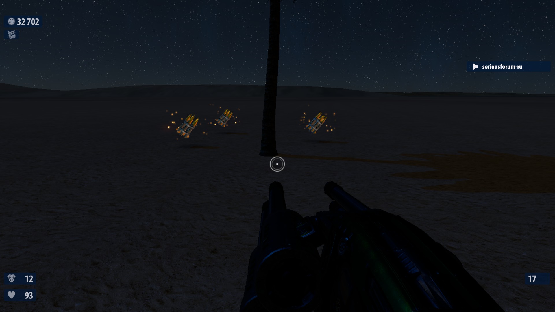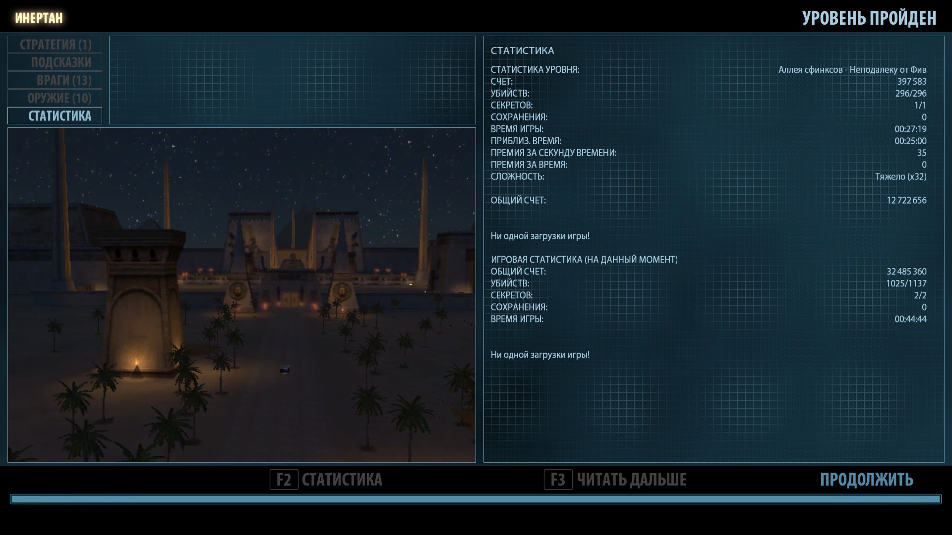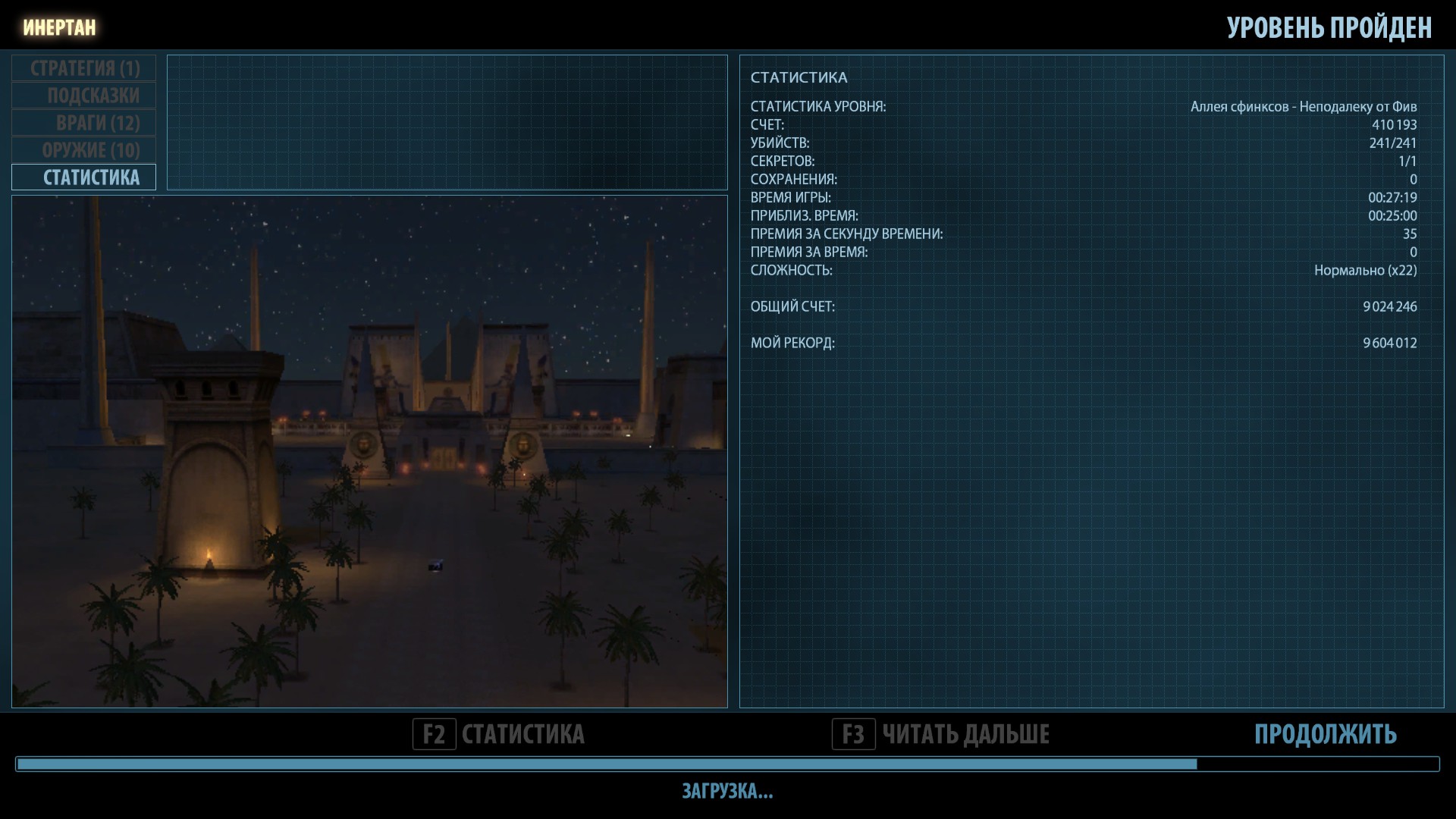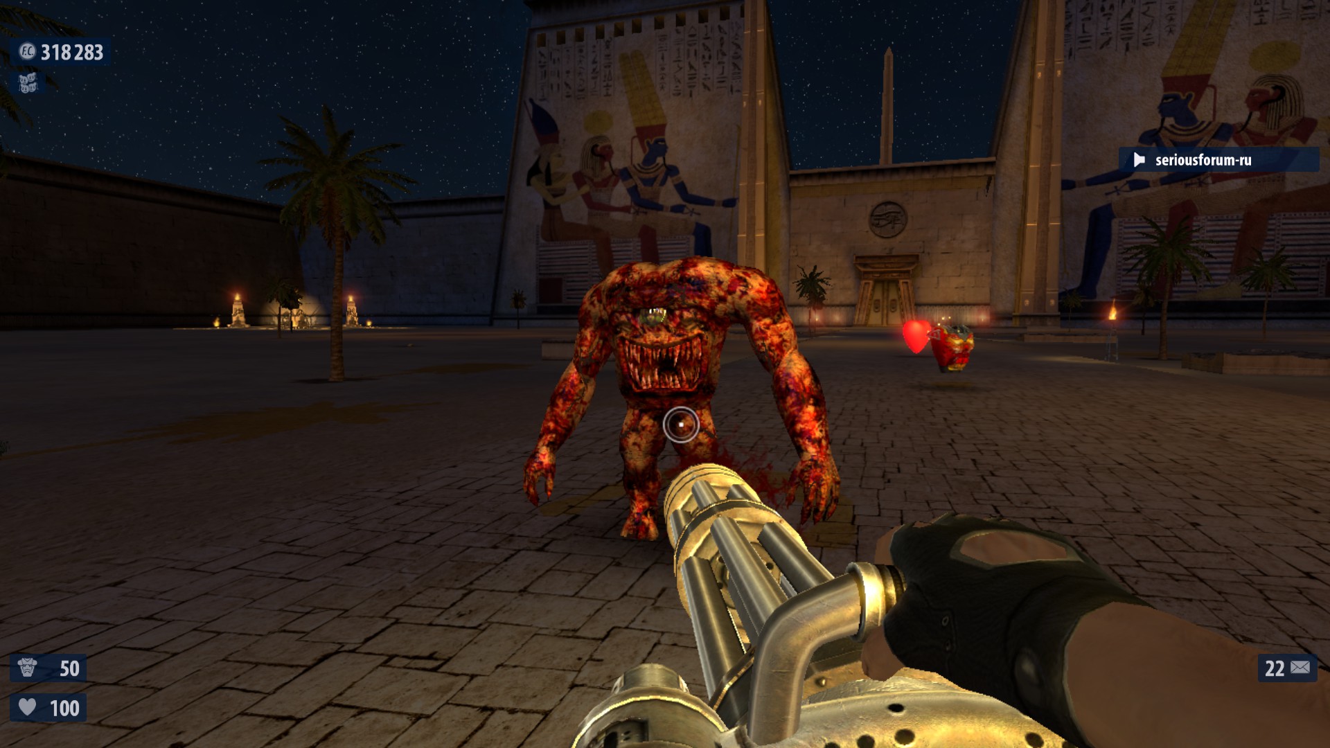 Длинная аллея... Деревца там, пальмочки... С-с-с-сволочи!!! Где патроны? Патроны, спрашиваю где? Украли, гадюки! Не было же никого вокруг!!! Ну, блин, как в Россию попал. Там выйди в поле, чтоб за версту ни души. Положи три рубля. Отвернись на секунду - нет трех рублей. И ветра не было. Ни ветра, ни души, ни рублей... А тут патроны воруют. Сперли все патроны, кроме винтовочных. Но сама аллея относительно проста. Приколы в основном однообразные - берешь какую-нибудь фигню и из всех щелей сразу лезут твари... Но секрет именно тут - смотрим влево-вперед (градусов 45 от самой аллеи) - вдали в пустыне пальмочки отдельно