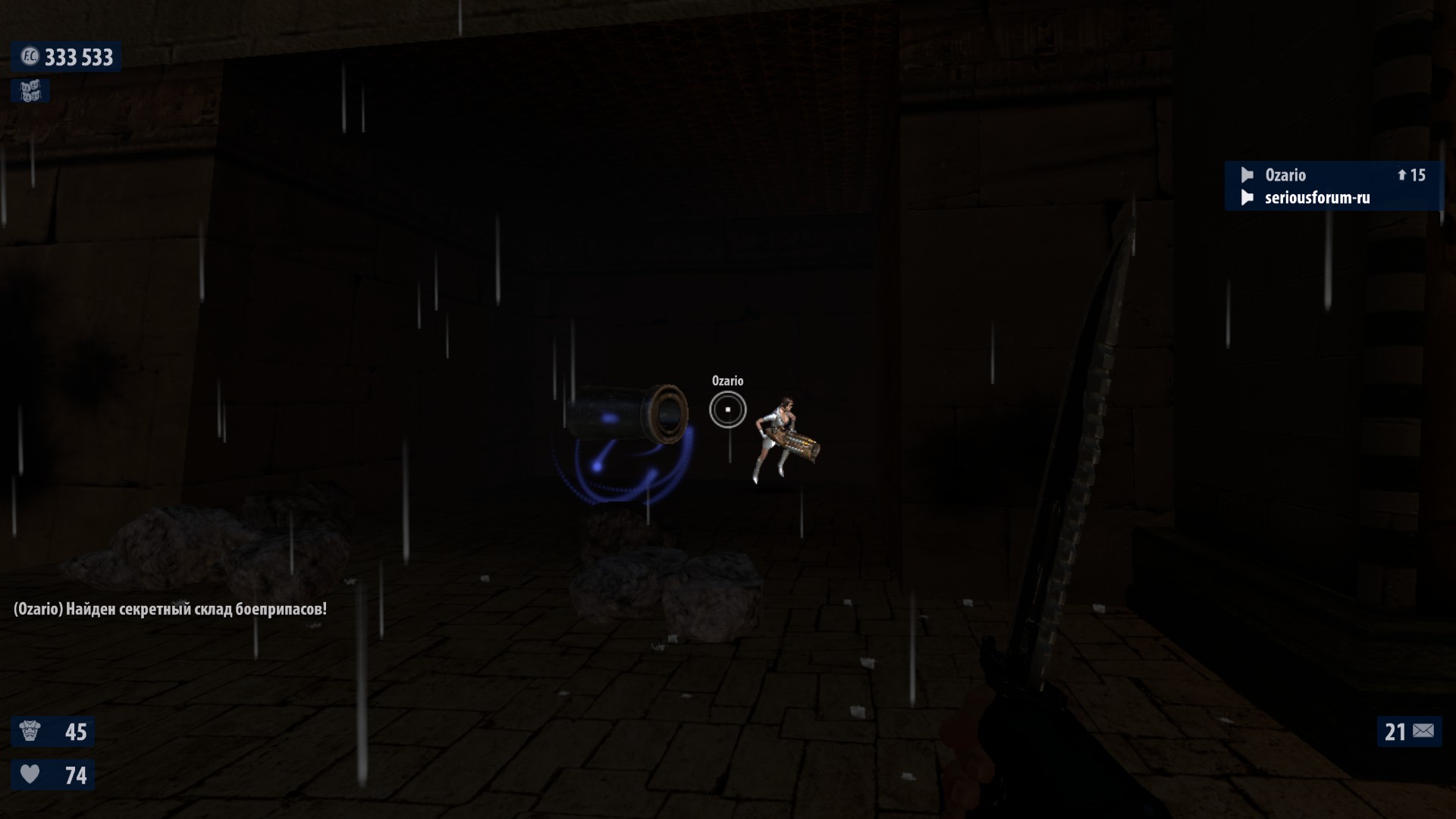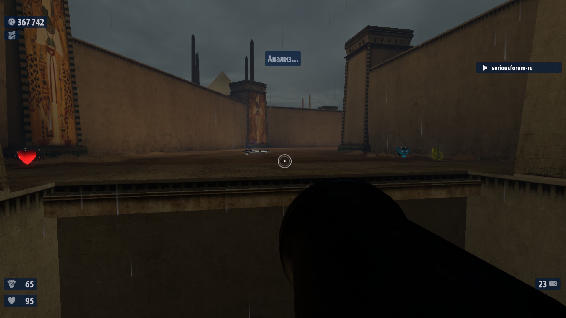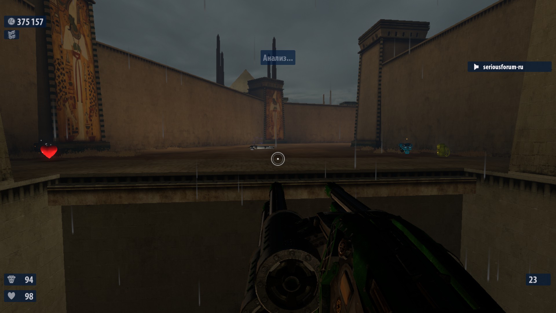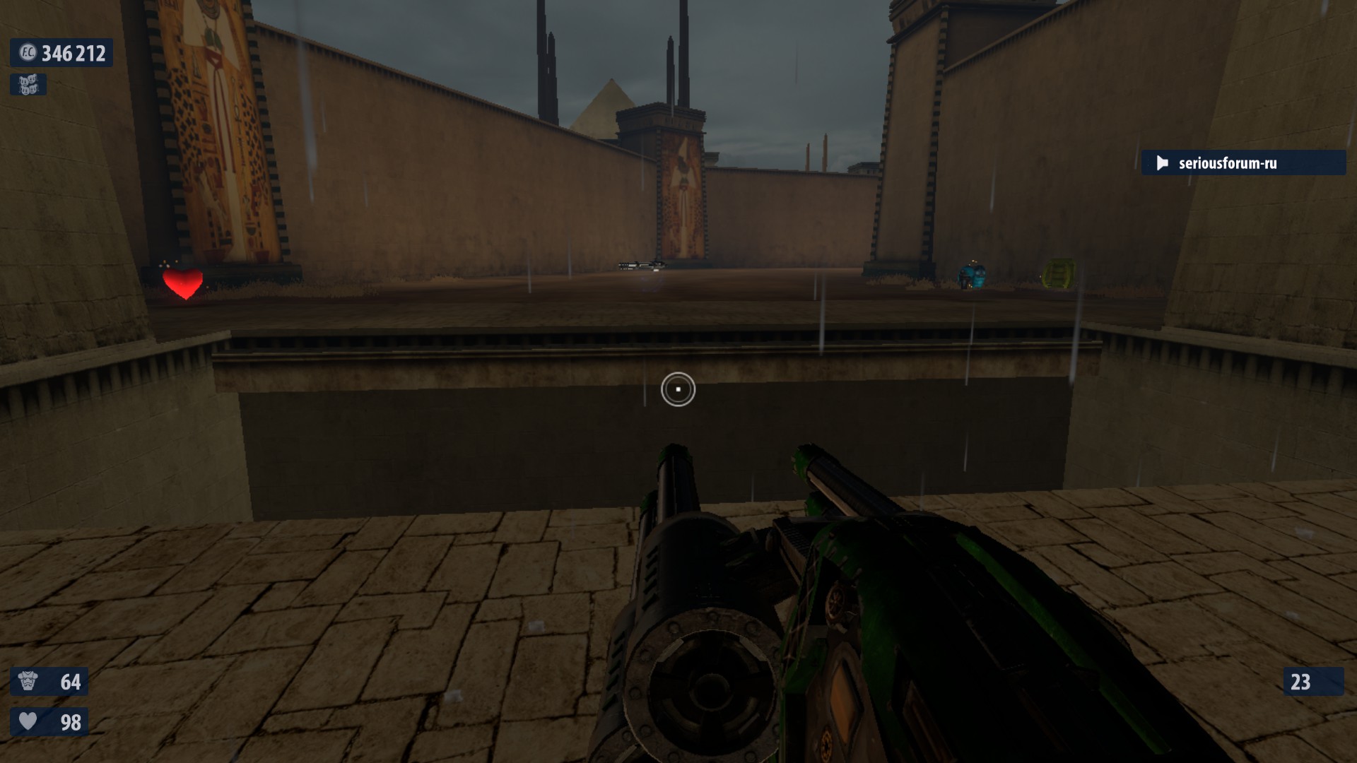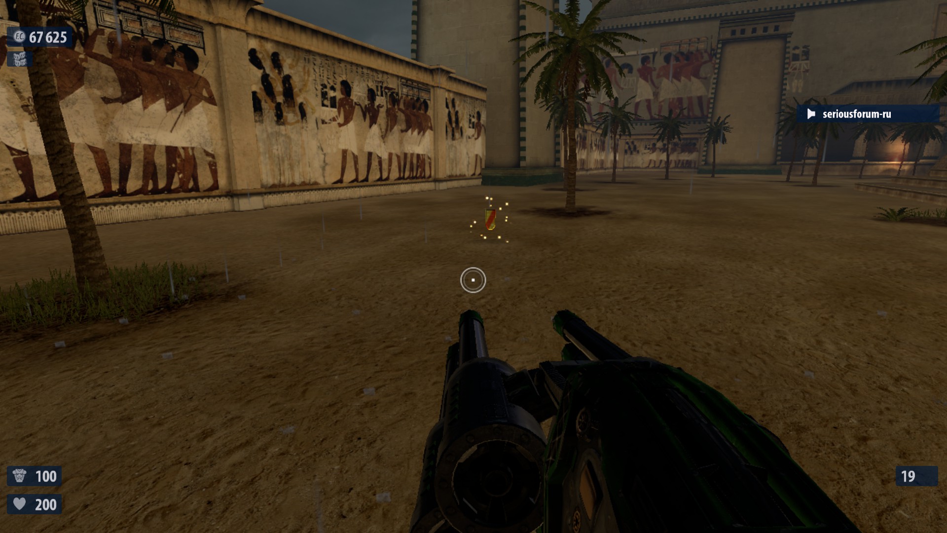 Ну а теперь несколько советов для тех, кто играет на ОЧКИ и хочет пройти по нормальному пути. Пройдя в первой зале через черные дуги , мы откроем ворота дальше и наживем себе жуткий геморрой - там за воротами город, в котором нам надо для выхода найти 4 жука в домах. Это не сложно. Сложно то, что в ЭТОМ городе твари появляются при проходе через улицы и там их жутко много, особенно пулеметчиков-скорпионов и безголовых всех сортов. Ну а когда вы выйдете в следующую часть уровня - дорогу между домов, то первая середина уровня проста - до ямы с гвоздями. Вот после него на нас несется гигантское стадо быков, а потом еще большее стадо Кли. Если лупить по ним из оружия, то это слишком жирно - никаких патронов не хватит, так что я сделал так. Первый бык всегда спокойно падает в яму и там загибается. Второй тоже несется, но плита выдвигается и он оказывается на нашей стороне. Надо отпрыгнуть в сторону перед самым его носом, но так, чтобы оказаться на плите и успеть на ту сторону раньше, чем плита задвинется назад. Если же вы будете стоять на той стороне, то
