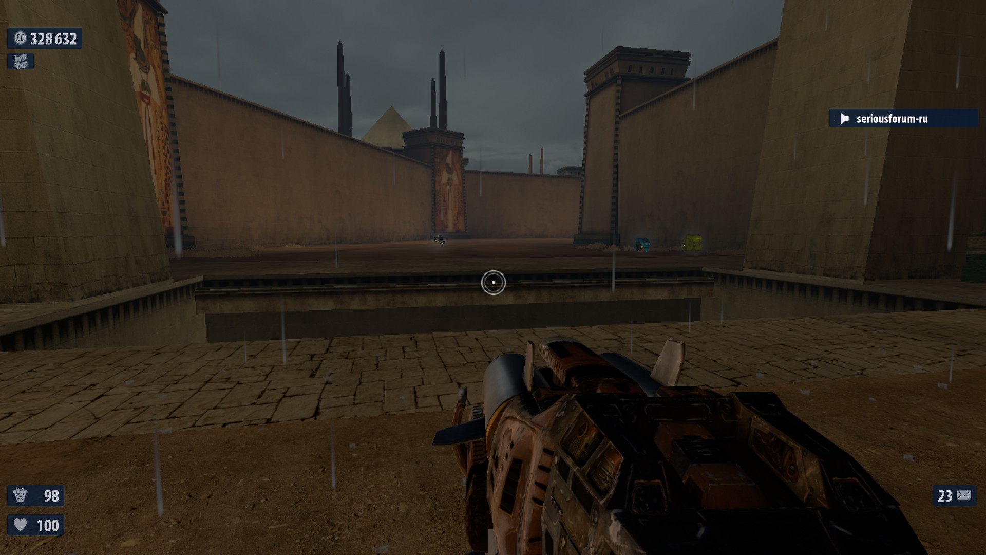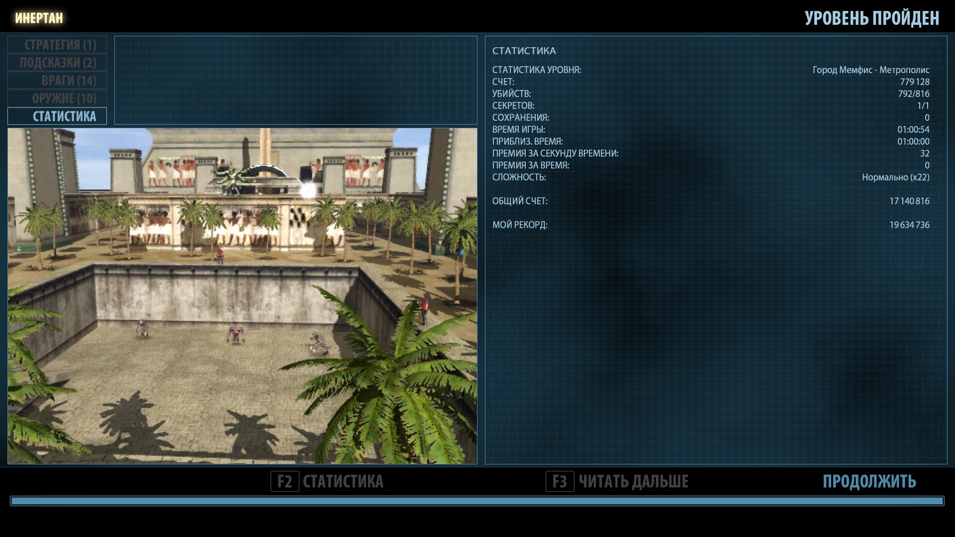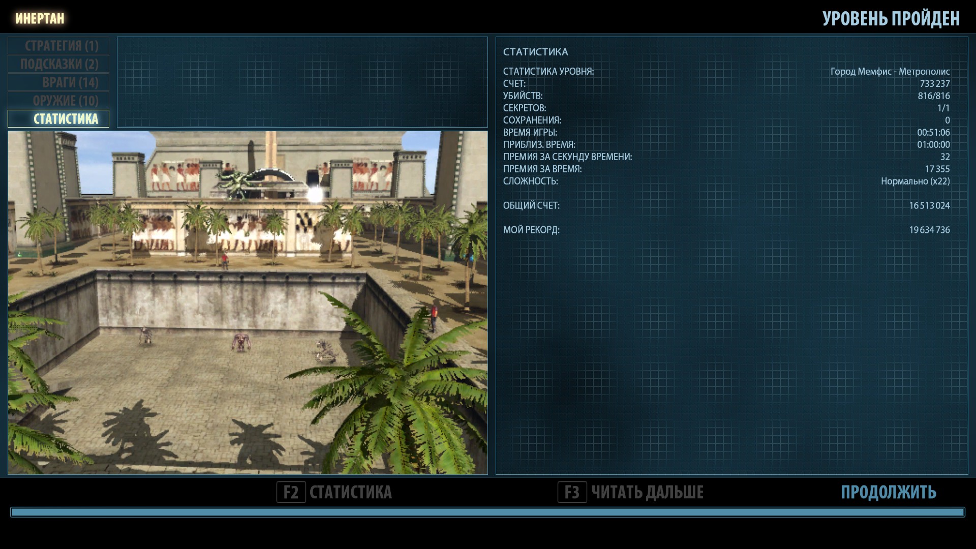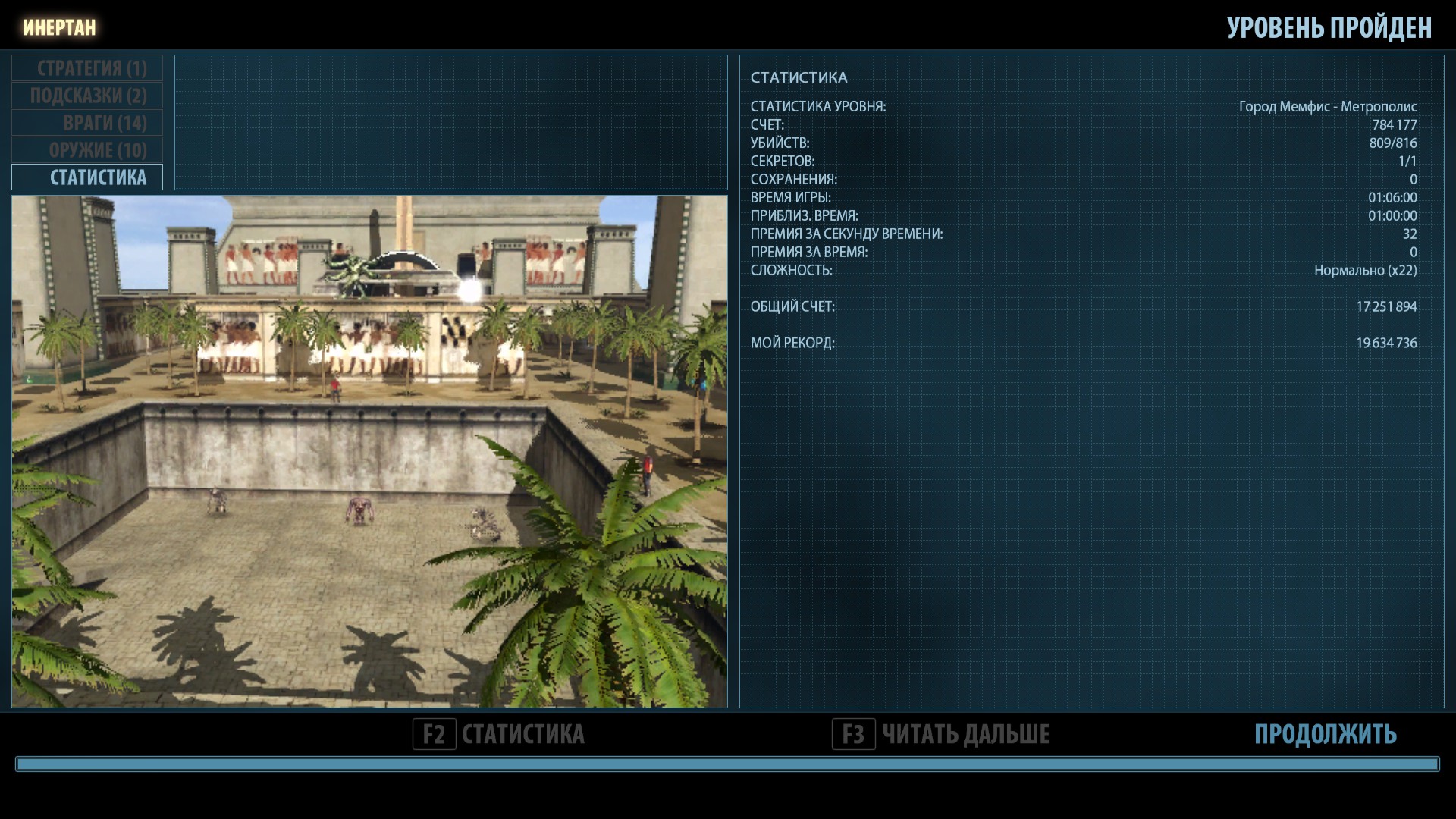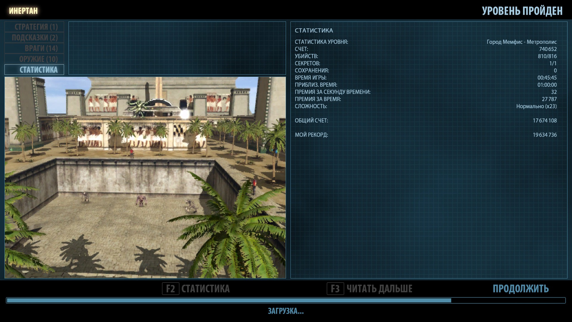 Этот уровень - подготовка к самому последнему адскому бою. Вырвавшись из канализации мы оказываемся в городе. Просто мочим все, что только можно, и готовьтесь к тому, что что бы вы ни брали, сразу появятся твари и их придется расстреливать. Так что осторожнее - не хватайте все и сразу. Если Вам вообще влом сражаться и Вы игрете на уровне выше или равном Нормал, то подбегаем к стене и Рокет Джампом запрыгиваем на нее. Полюбовавшись на кучу глюков (типа зеркальных поверхностей, оказывающихся просто потерянными структурами). Бежим вперед, мимо всех глюков и мимо всех уровней вплоть до последнего. Все они окружены стенами, так что в одном месте мы вынуждены спрыгнуть на песок. Ну и около последней части этого уровня на песке есть такая хреновина - пружина, которая и закинет нас назад. Тут то нас ждут приколы последней площади - сначала куча Бомберменов (я их завалил из пистолетов, когда ворота открыты или из автомата Томпсона - когда ворота закрыты - см. ниже когда ворота как), потом птички, потом бычки, потом куча Кли да несколько Красных Биомеханоидов. Но тут один прикол - ворота на эту площадь работают по странному принципу. Когда мы берем вещи на площади и появляются первые твари , ворота должны бы закрыться (если бы мы шли нормальным путем они бы открылись, пропуская нас). НО!!! Так как мы запрыгнули из-за стены, то ворота изначально были ЗАКРЫТЫ и теперь они ОТКРОЮТСЯ. Выбежав в них мы встаем и твари вынуждены атаковать нас в узкую щель ворот (кроме летунов). Это намного