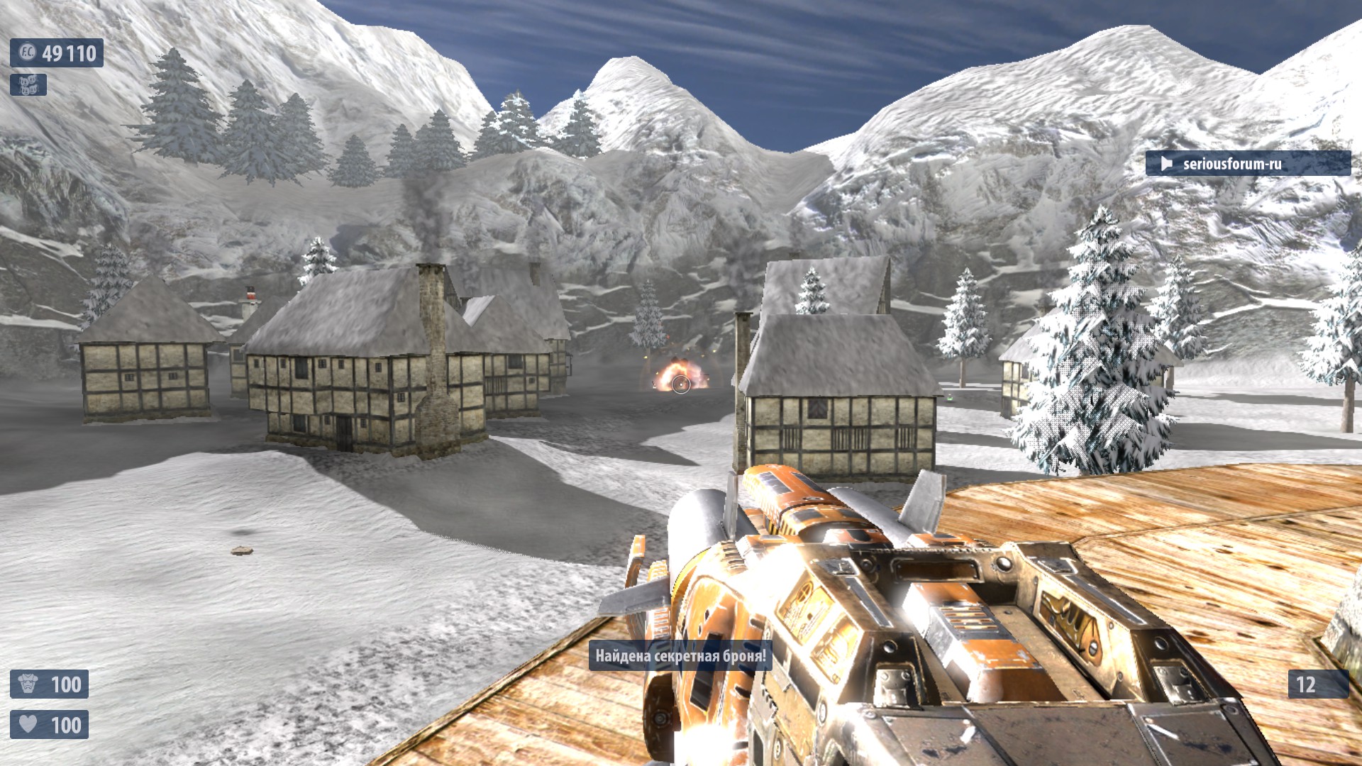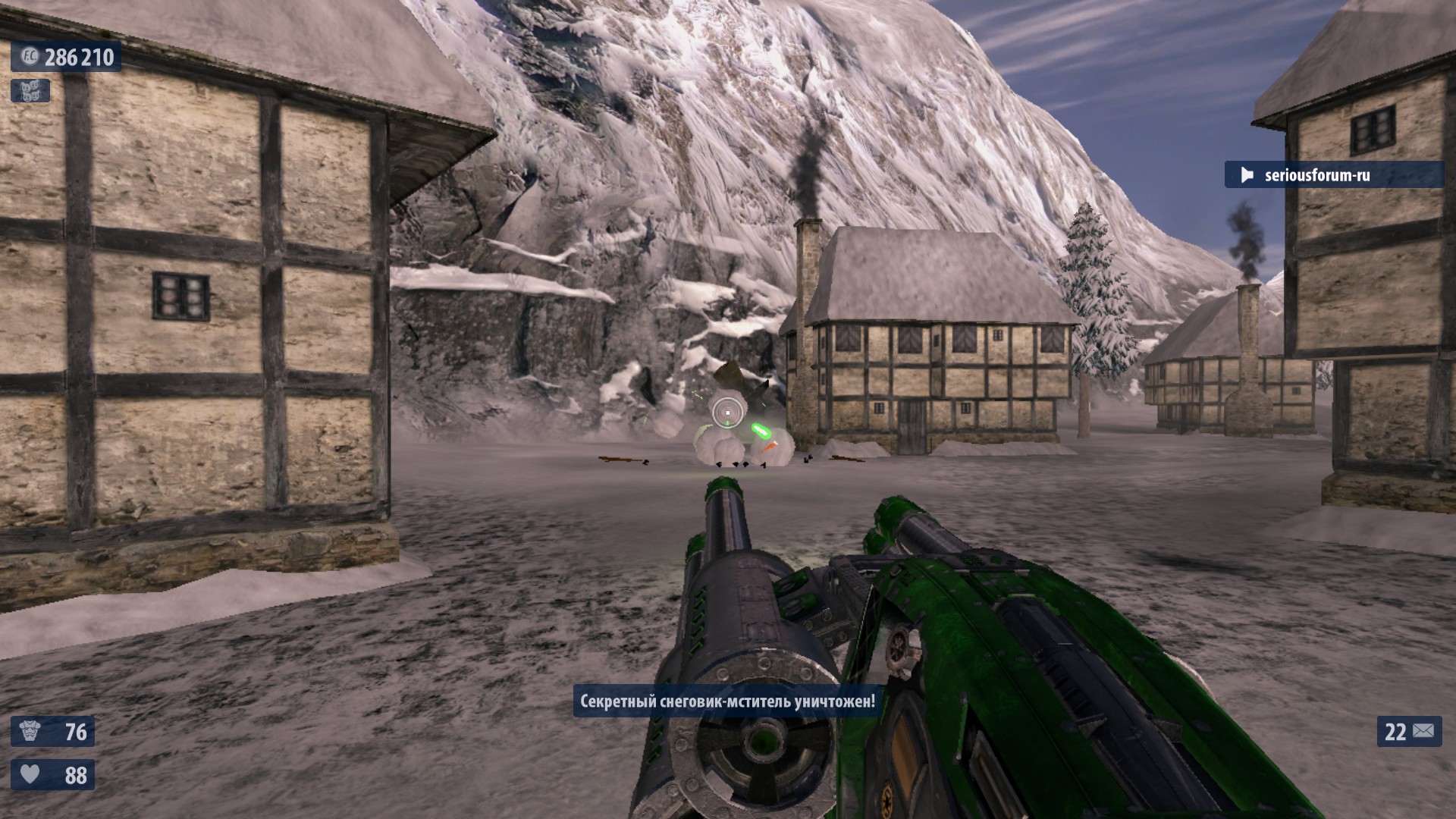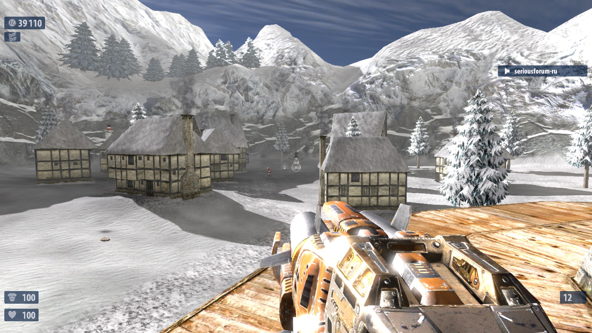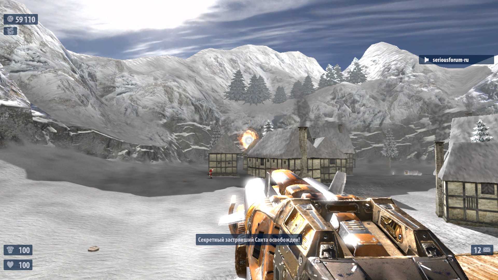 7. Недалеко от №6 в правом конце деревни находится снеговик с рычагом на нем. Поверни рычаг для активации еще одного Деда Мороза. Если разнести снеговика-рычаг останется. Оптимальное выпадение-неубивайка и суперущерб. И что то ещё. Один раз выпало ТРИ неубивайки сразу.