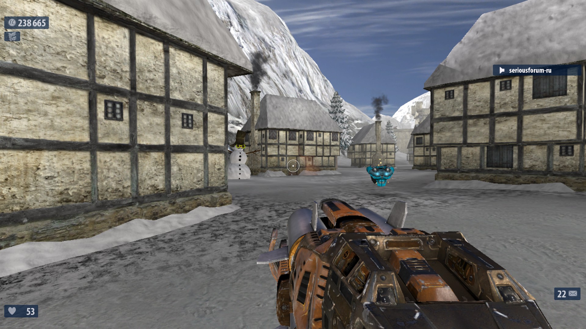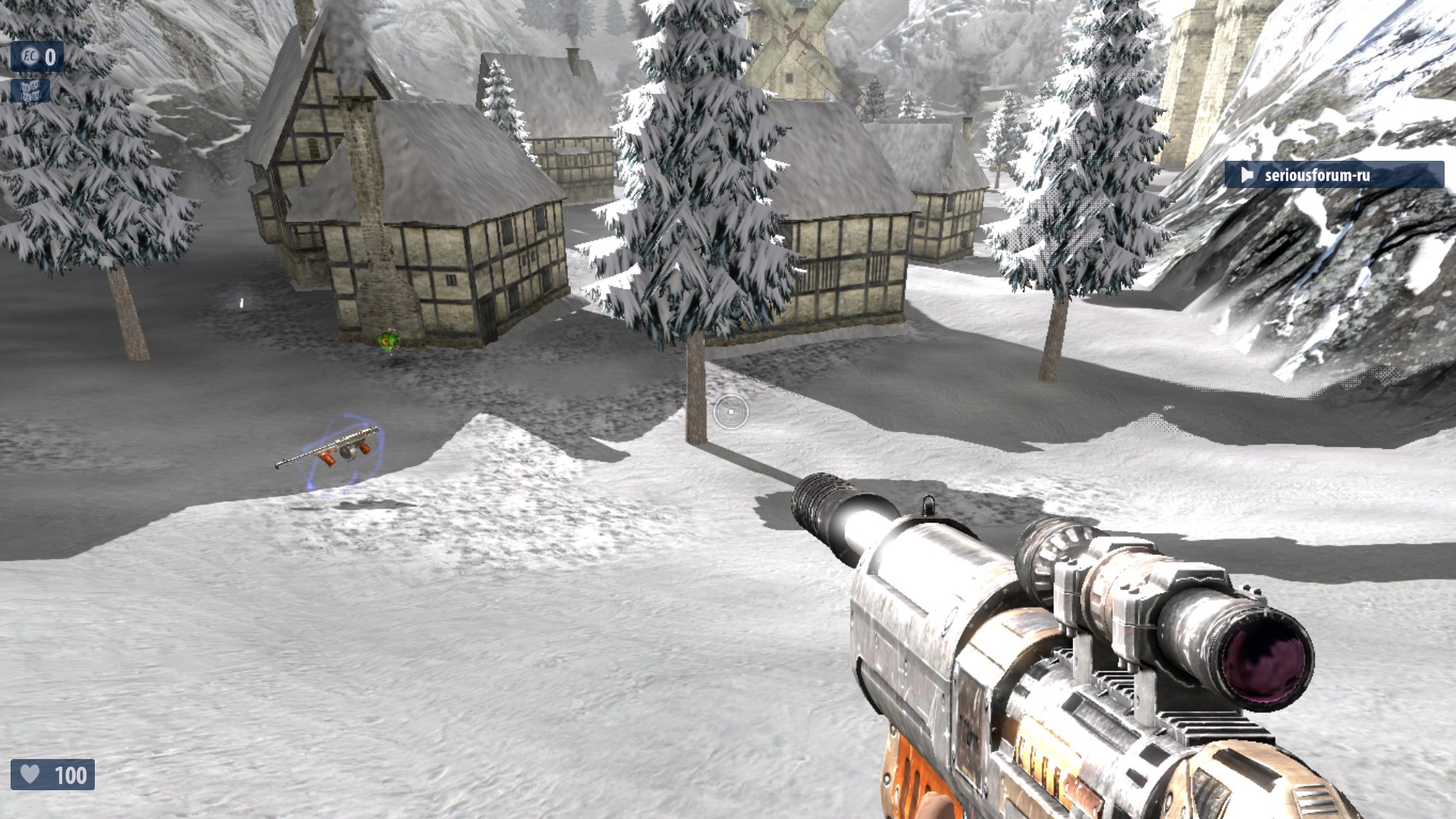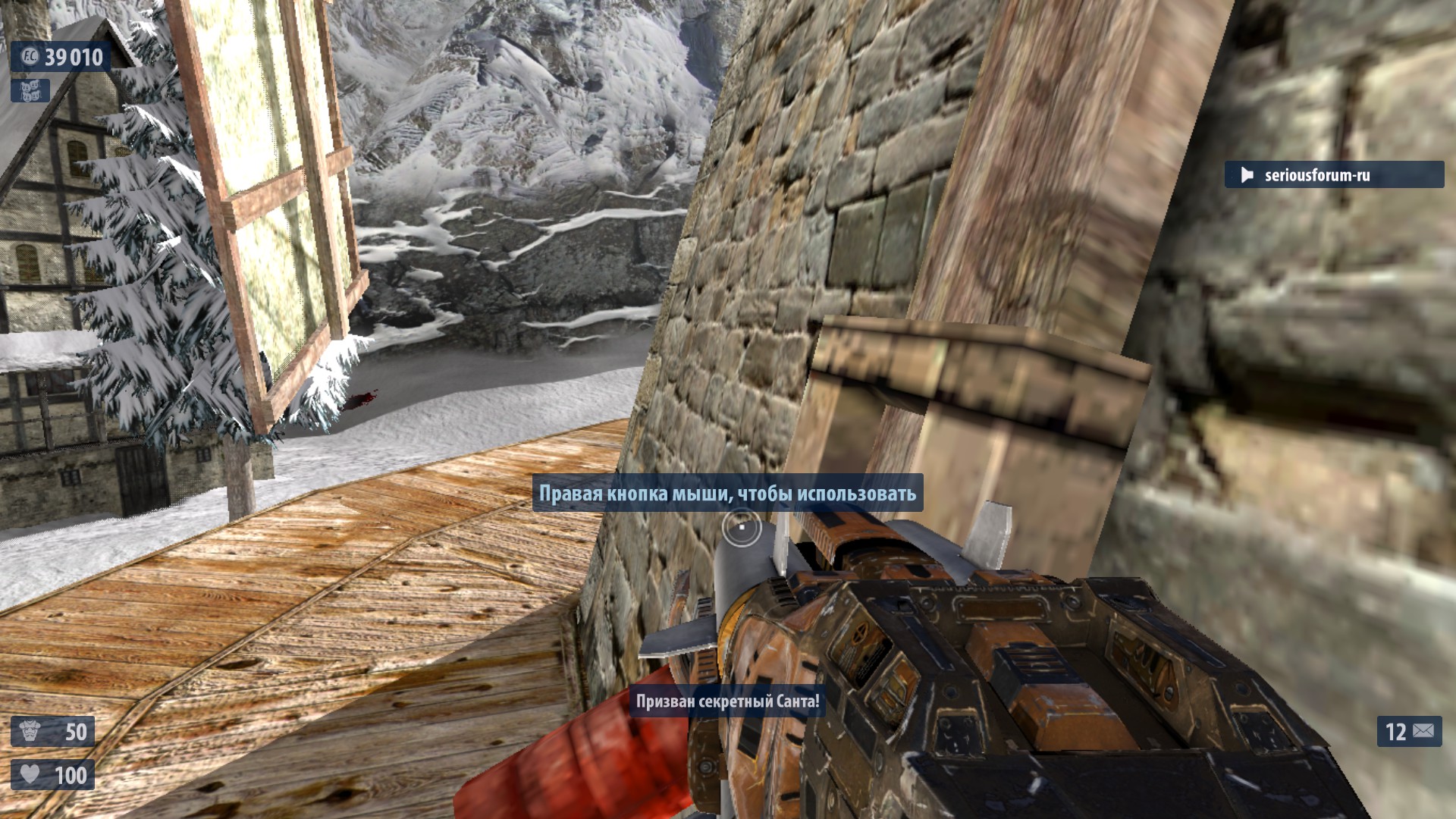 7. Недалеко от №6 в правом конце деревни находится снеговик с рычагом на нем. Поверни рычаг для активации еще одного Деда Мороза. Если разнести снеговика-рычаг останется. Оптимальное выпадение-неубивайка и суперущерб. И что то ещё. Один раз выпало ТРИ неубивайки сразу.