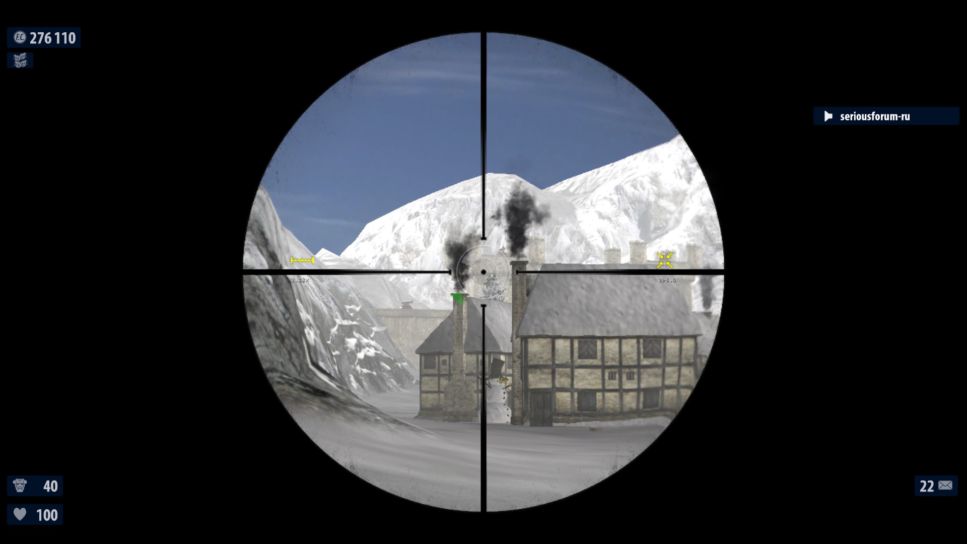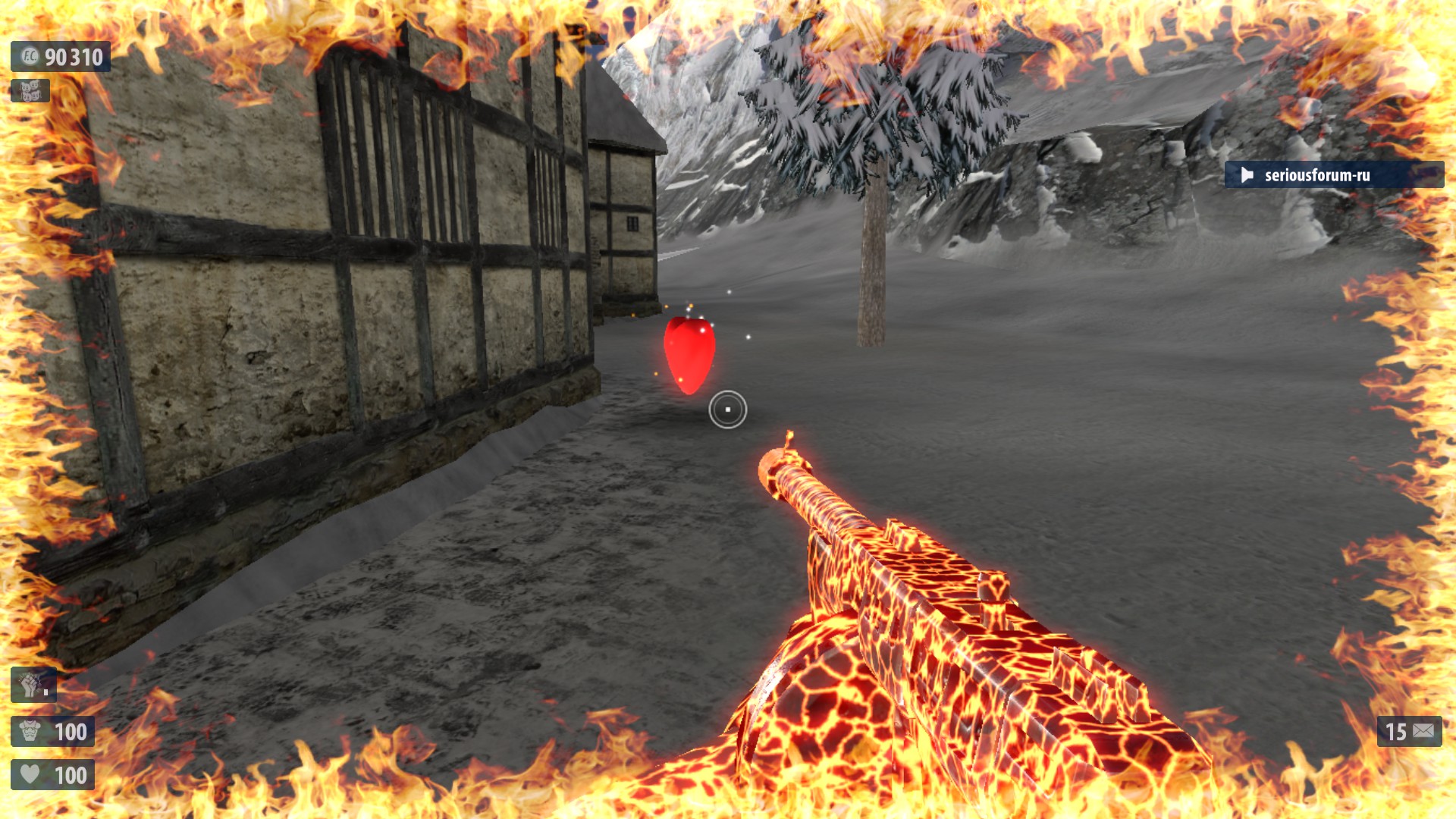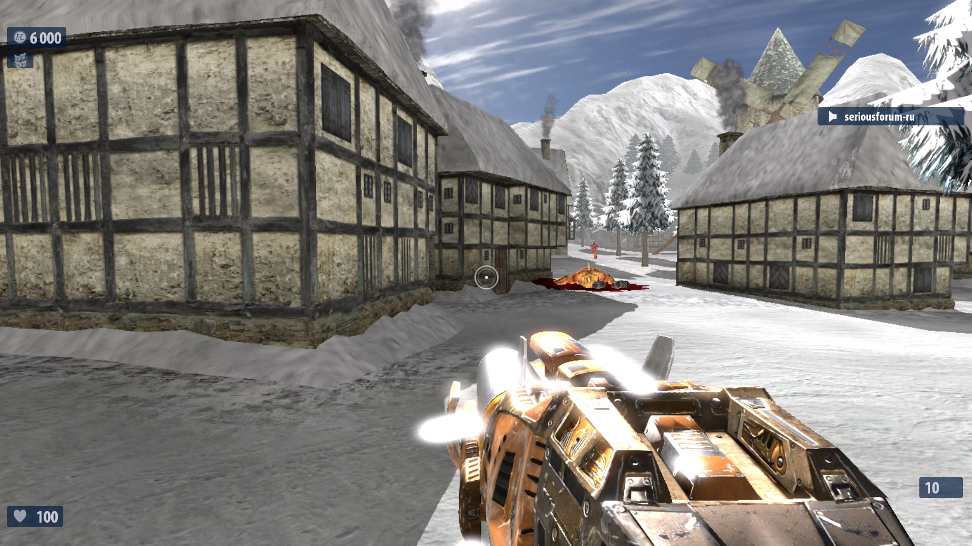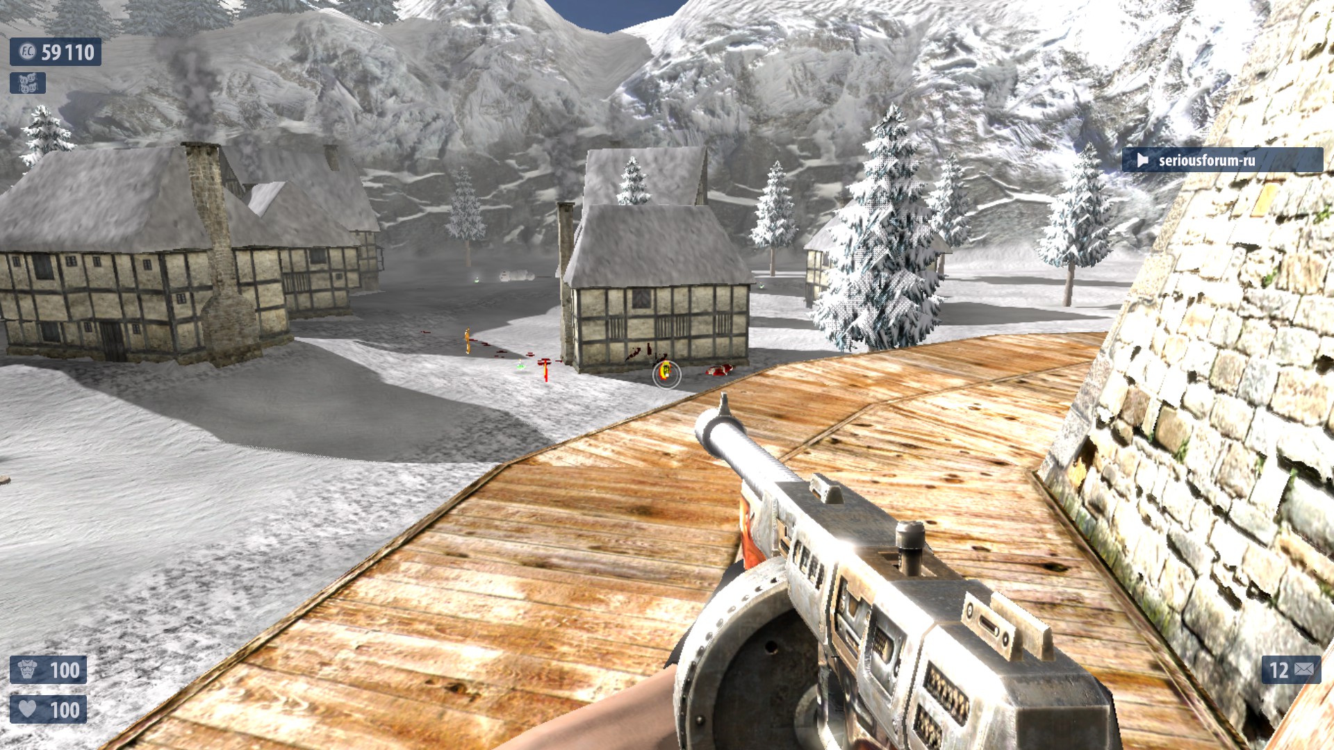 7. Недалеко от №6 в правом конце деревни находится снеговик с рычагом на нем. Поверни рычаг для активации еще одного Деда Мороза. Если разнести снеговика-рычаг останется. Оптимальное выпадение-неубивайка и суперущерб. И что то ещё. Один раз выпало ТРИ неубивайки сразу.