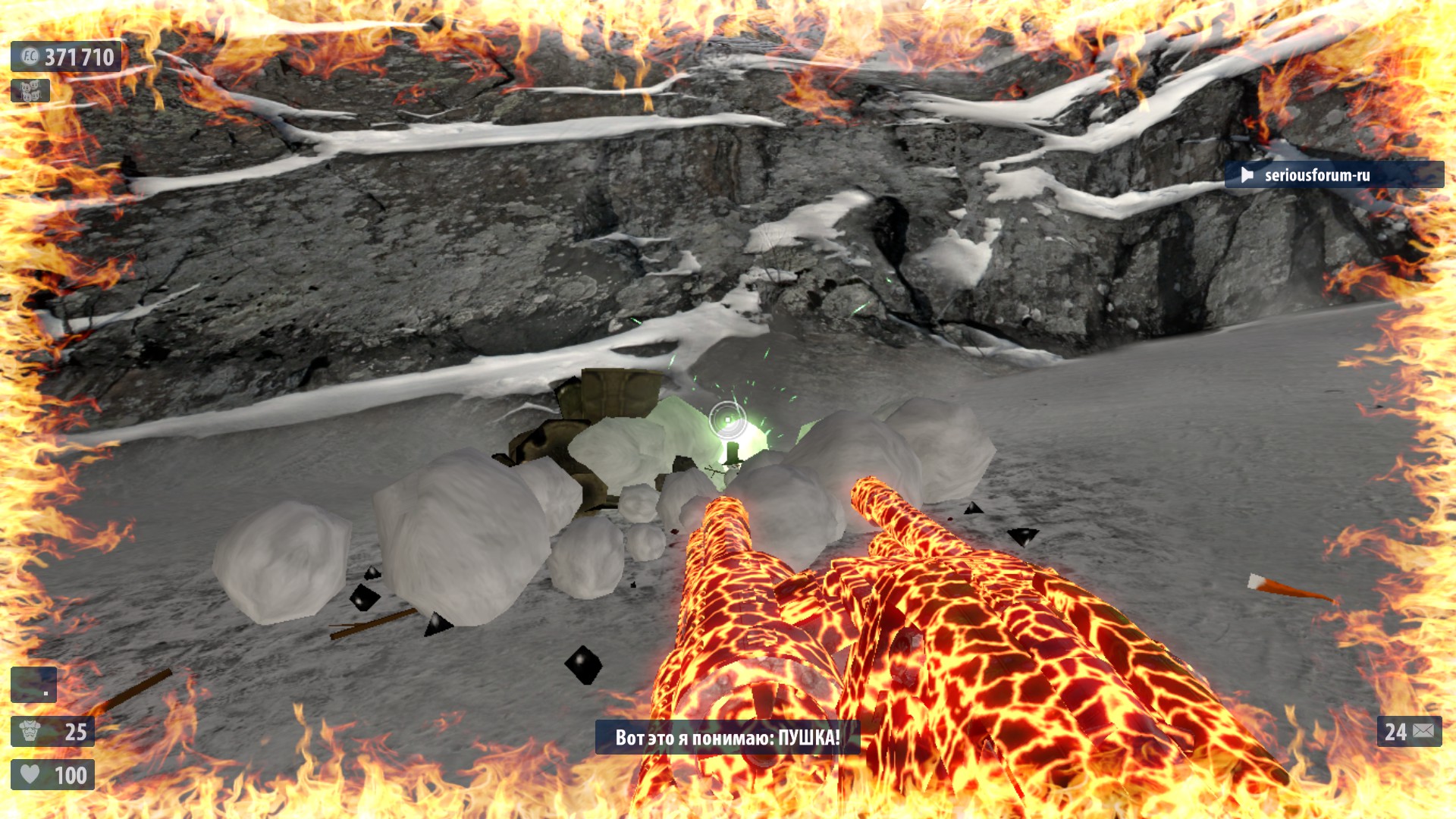 8. Стреляй в снеговика снова и снова, чтобы получить сообщение, что ты имел дело с «невероятным уменьшающимся снеговиком».