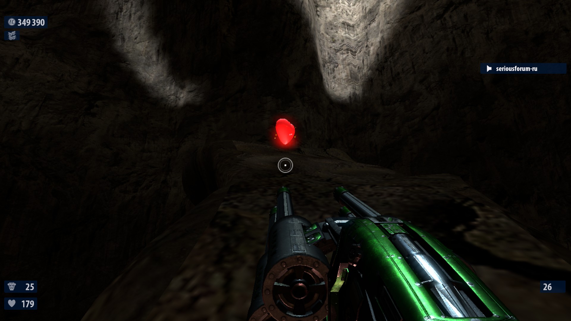 10. Как только ты войдешь, ты должен заметить свечение на отвесной стене впереди, на другом конце пещеры. Выстрели в этот свет, чтобы взорвать уступ, на котором он находится. С уступа упадут ядра для пушки, испускавшие свечение. Ты сможешь подобрать их, когда доберешься до конца пещеры.