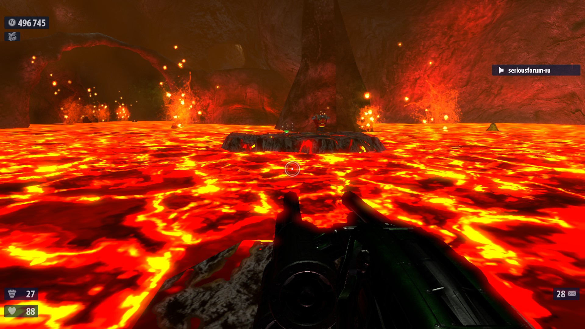 12. Когда доберешься до места, где тебе необходимо передвигаться по плавающим в лаве платформам, заберись на саму дальнюю слева от тебя и одновременно ближайшую к огромной скале посередине озера с лавой (скала также слева). Платформа начнет плыть по направлению к скале. По мере продвижения ты заметишь уступ на уровне озера с лавой. На нем находятся доспехи +200. Прыгни к ним с платформы, возьми, а затем снова прыгай на платформу. Она обогнет скалу и вернет тебя к другим платформам в лаве.