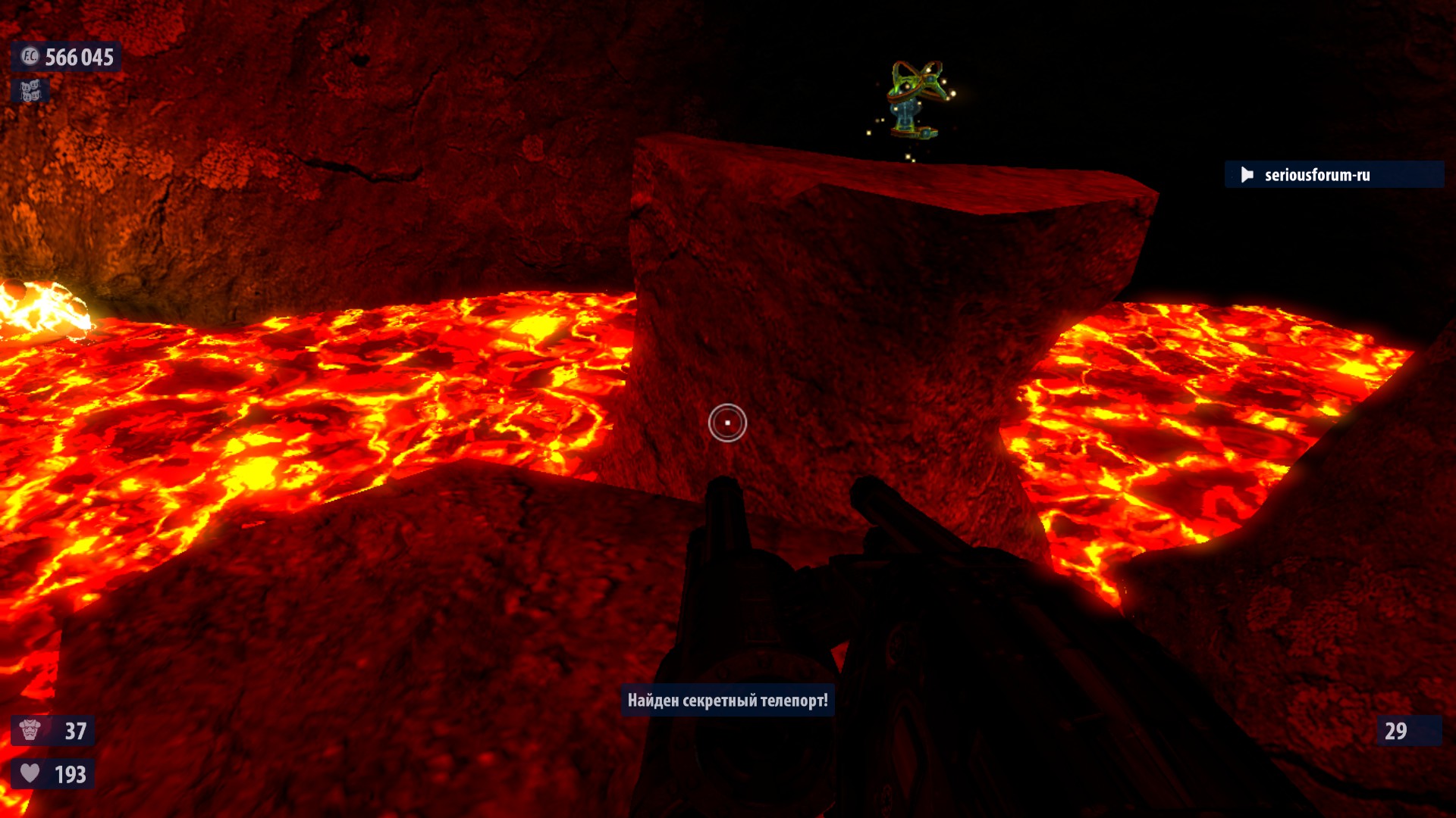 14.. Перед пастью-телепортом обойди помост справа. Там секретный телепорт. Броня, здоровье. После взятия надо прыгнуть в центр, между камнями-телепорт вынесет обратно. Включается только после взятия ништяков!