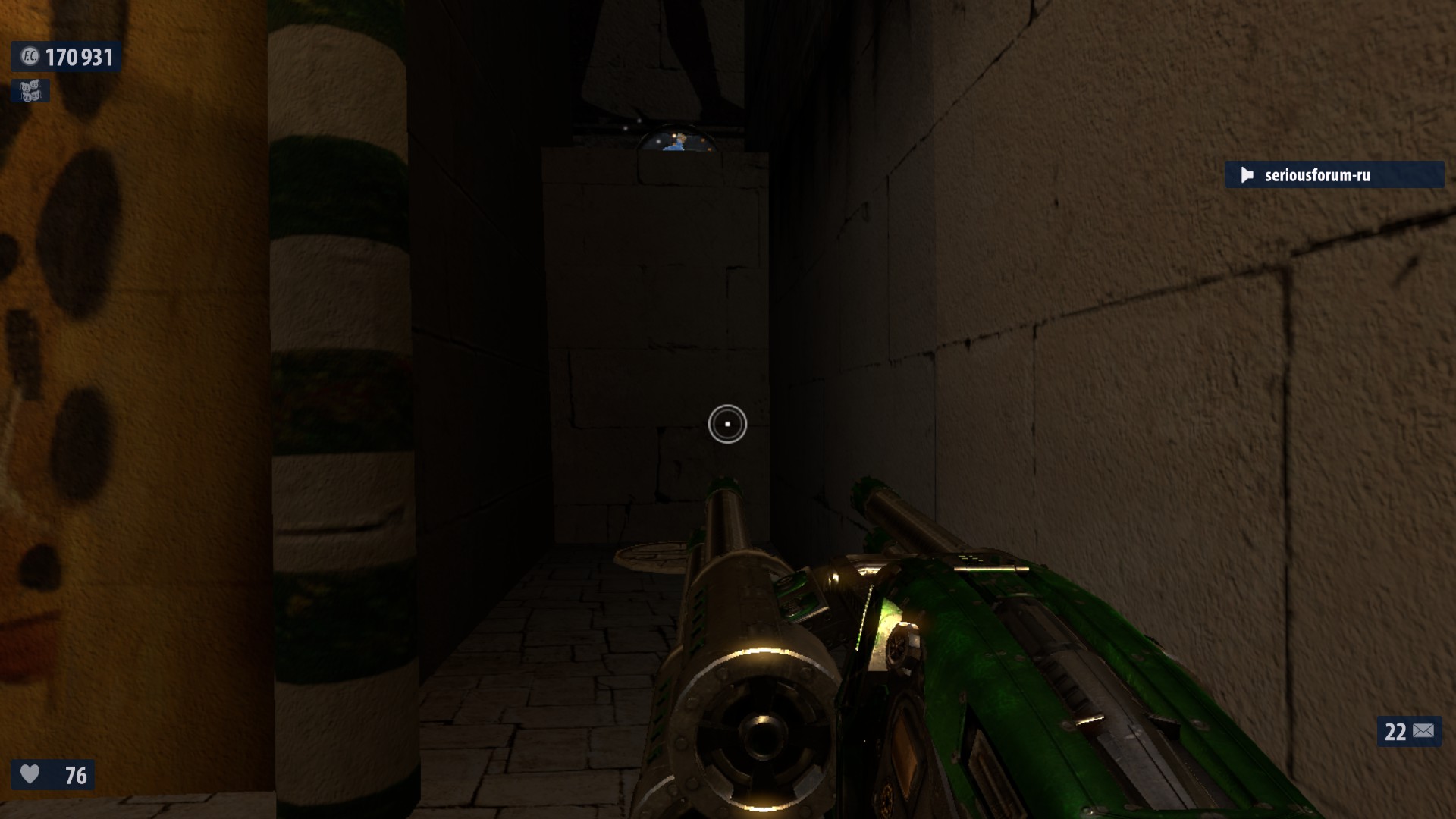 прямо, а ответвление в комнату справа) стоит Кли, а при выстреле в стену в комнате справа, она разваливается и оттуда вываливается Зеленый четверорук. Ну и с ним еще немного боезапаса. Странно, но это место не является секретом. Берем его (боезапас, понятно - тварь следует завалить) и побродив немного, получаем Руну-ключ. Возвращаемся и выходим дальше.