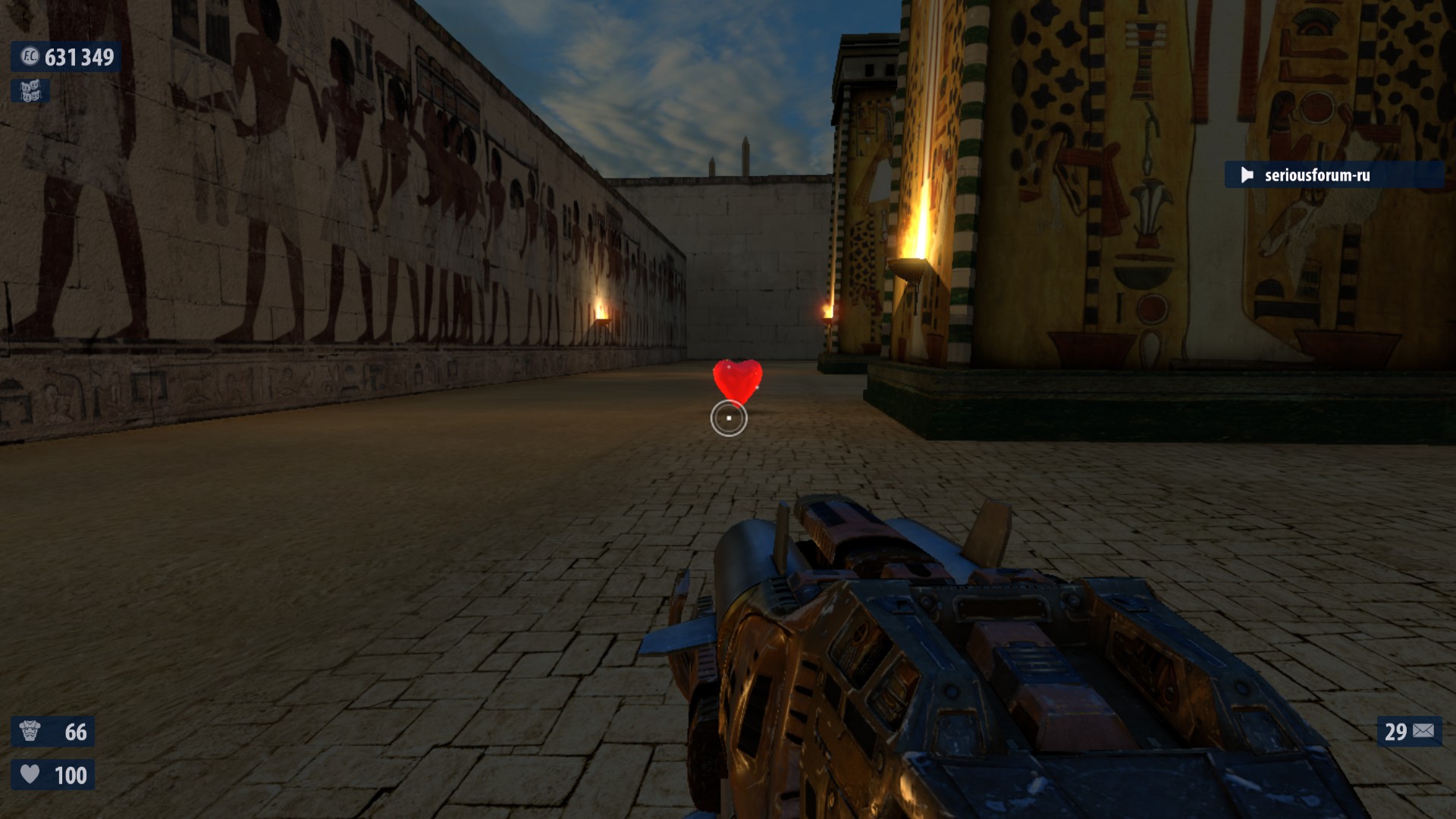 головастиков. Пулемет отлично уговаривает их помереть. Завалив их, снова встаем на плиту и, выстрелив в нее, уезжаем вверх. Не спускаясь вниз, можно добраться до Медальона, взять его, завалить появляющихся тварей и спокойно покинуть эту часть уровня. Но есть интересный прикол. Если Рокет Джампом перескочить на тот домик , что справа от входа в эту комнату и с него опять рокет джампом перелететь через забор вообще за уровень, то там лежит Сердечко, хотя оно секретом и не считается