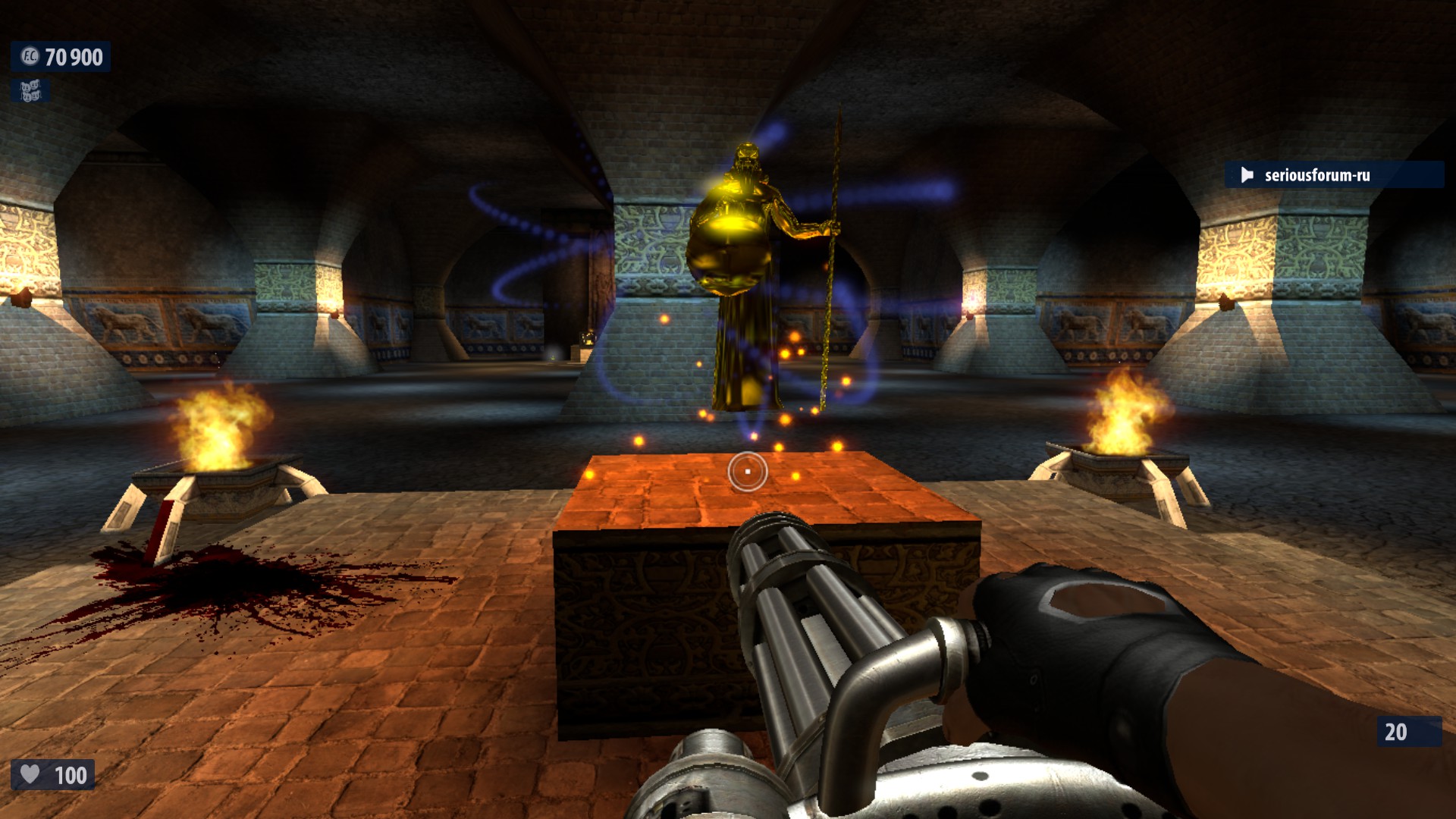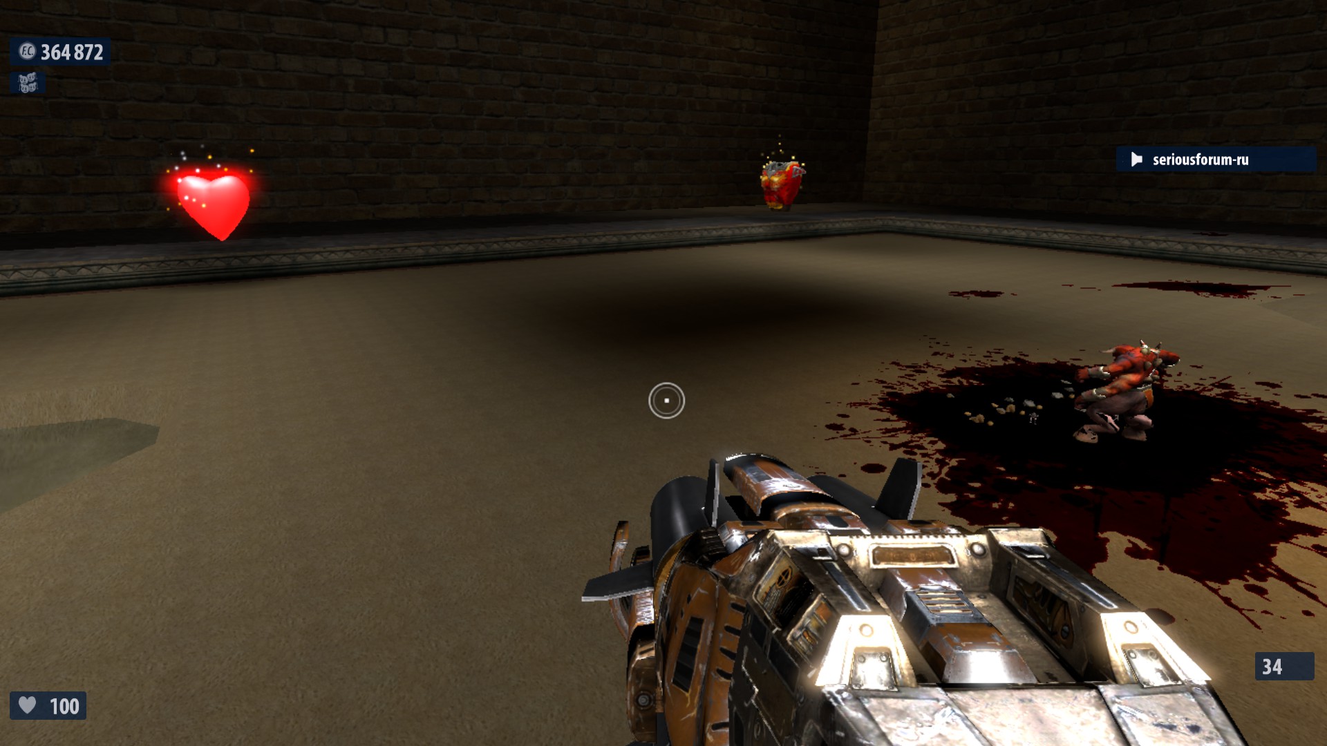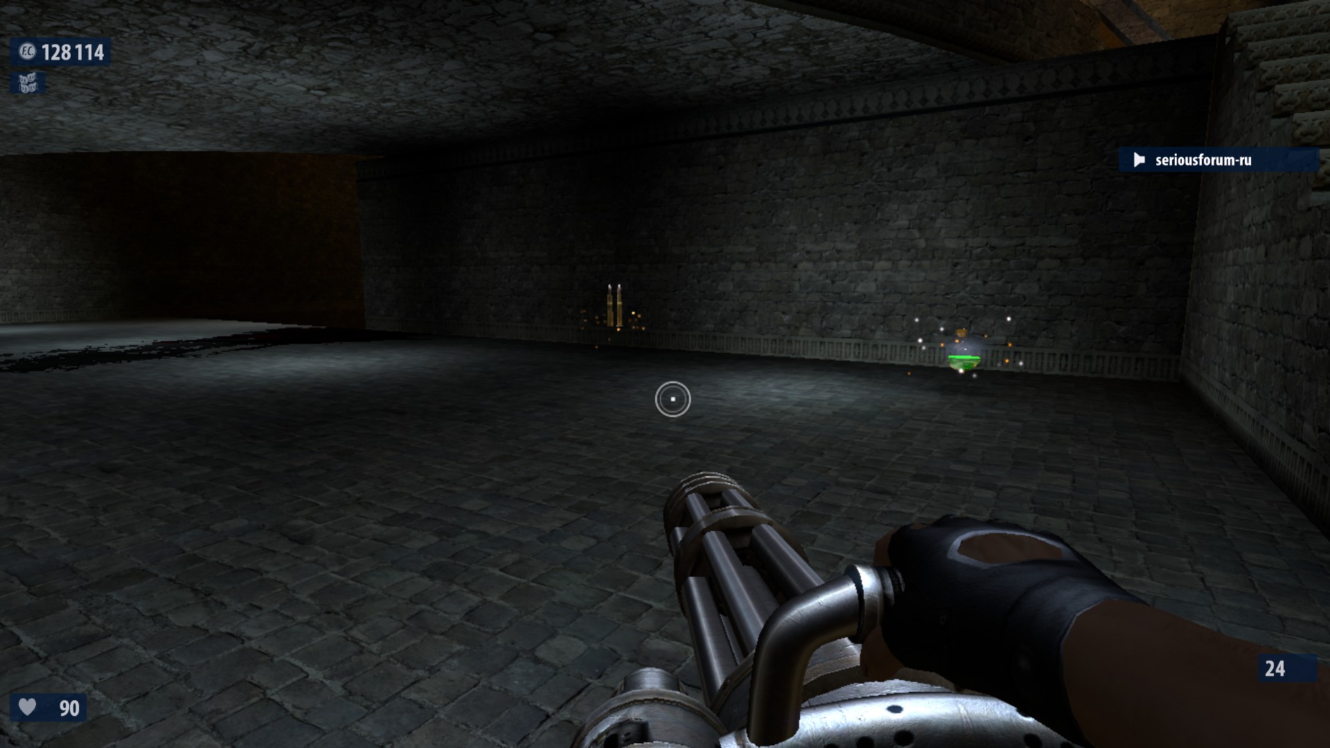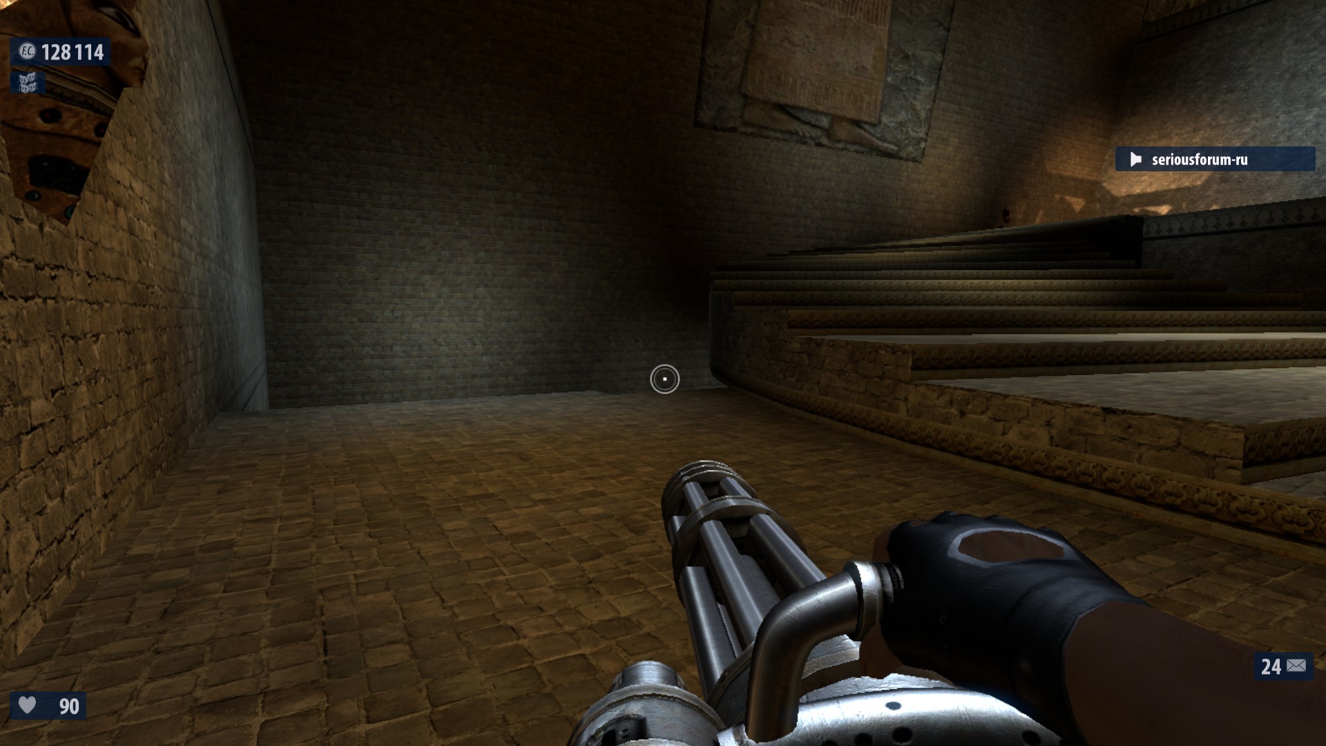 Церемониальный зал. Слева от выхода в нише имеются (патроны -1). Далее идем до пропасти. Справа под лестницей видно (сердце - 2). Но перед ним есть невидимый телепорт. Просто обходим его. После первого пролета спускаемся по лестнице – в нише есть (патроны - 3). Далее спускаемся на лифте вниз, где выстрелив в норку из ракетницы, вызываем (бычков - 4). Проходим все лестницы и пролеты. После крутого спуска поворачиваем налево за угол, за факел. Там трамплин выталкивает на выступ с (боезапасом - 5). Выходим к башне. Слева в стене есть башенка, стреляем в нее ,там (телепорт - 6) на студию, где есть броня и если все разнести кроме самого себя, то и сердце. В походе за третьей картой, около монолитной плиты в закутке есть темный квадрат, а там (бессмертие - 7). В следующей комнате таблетка и