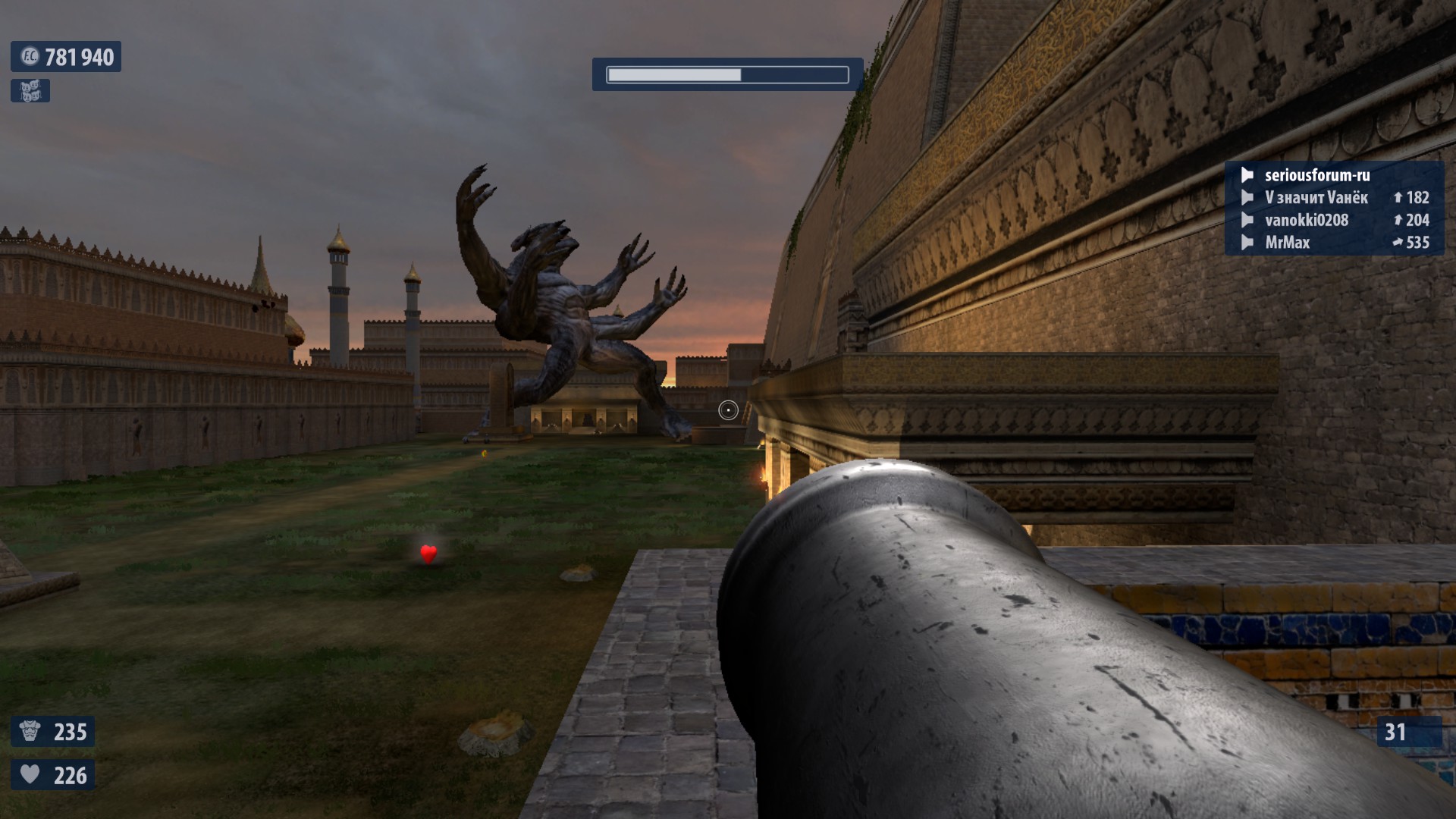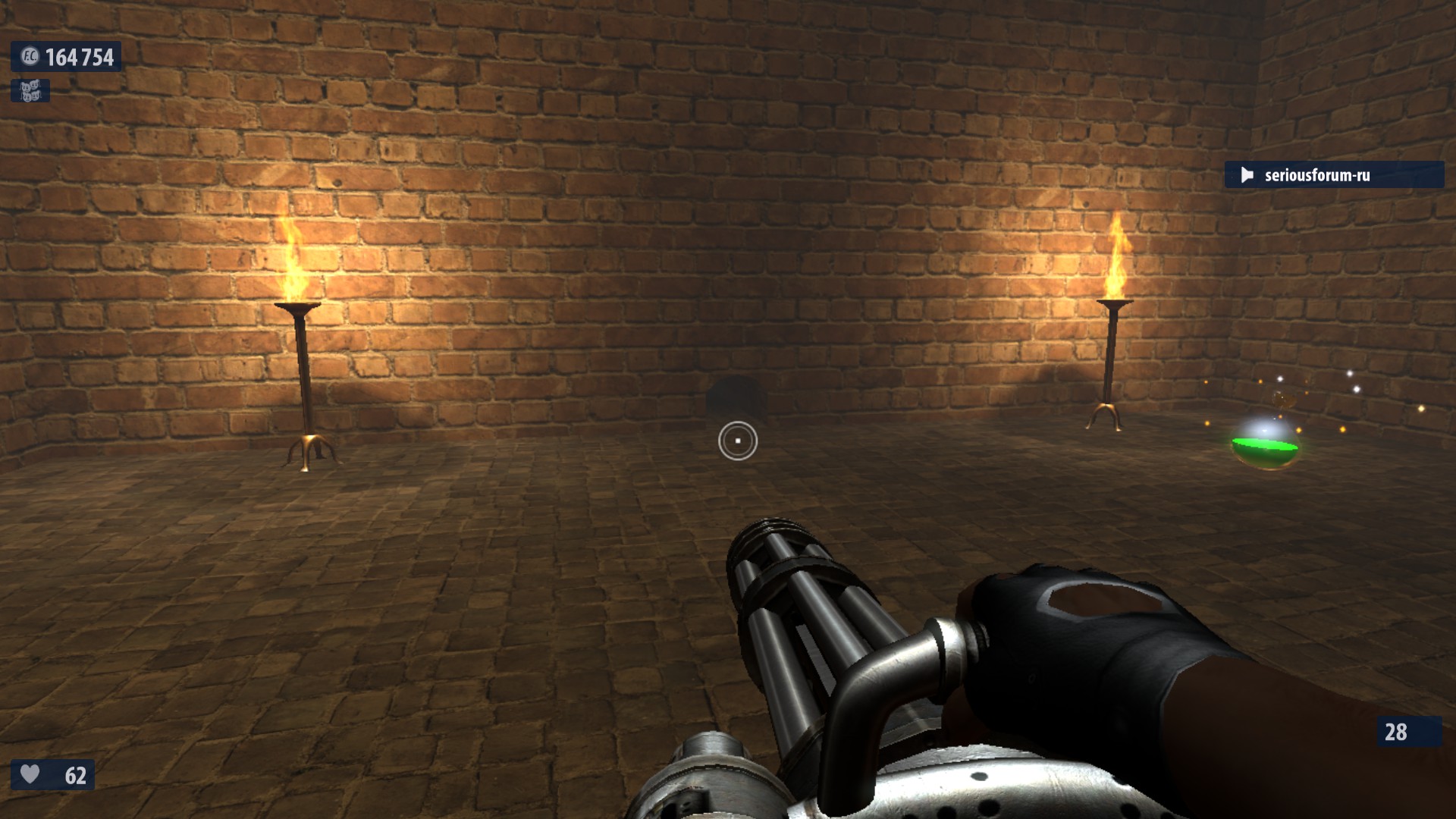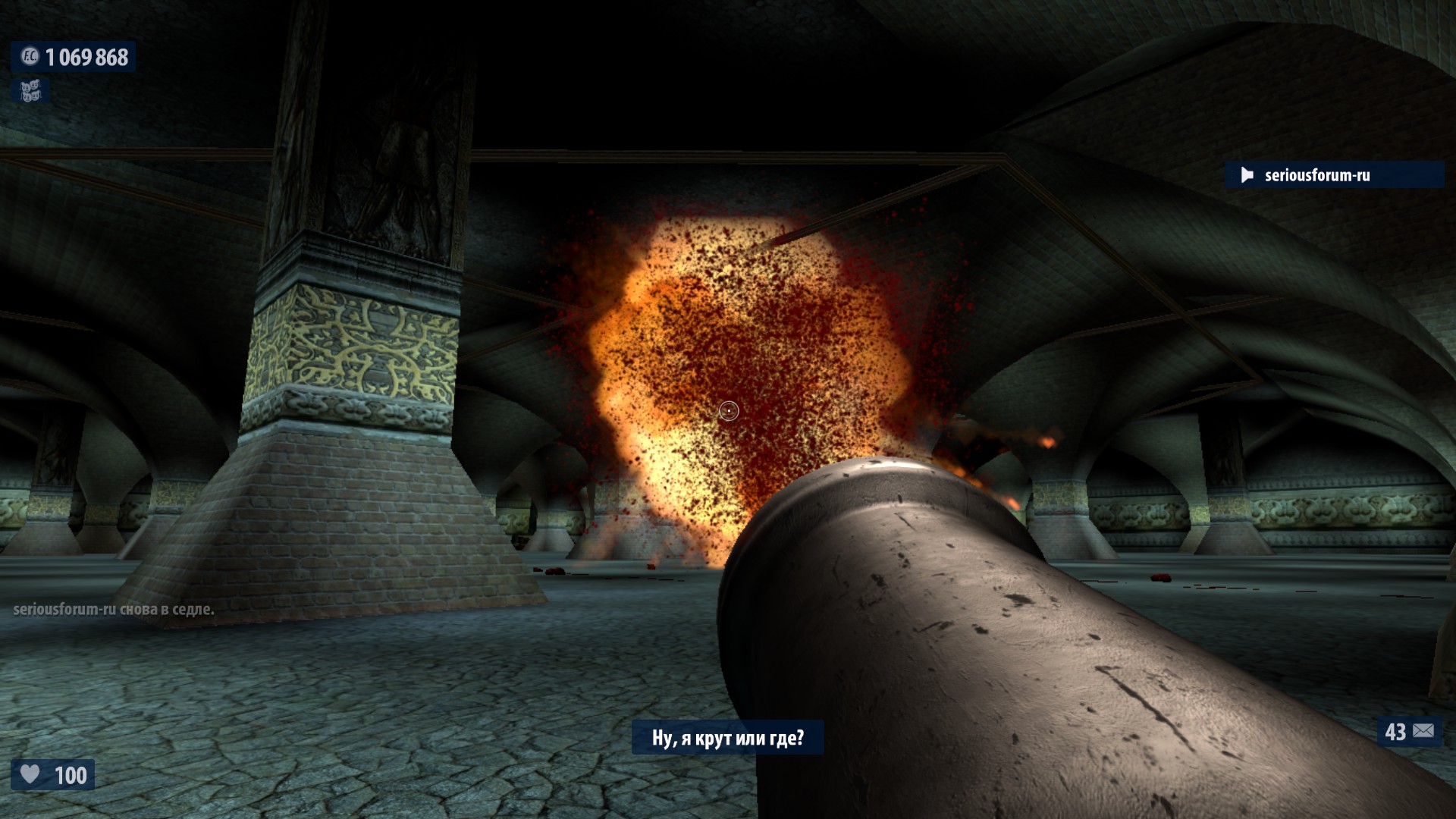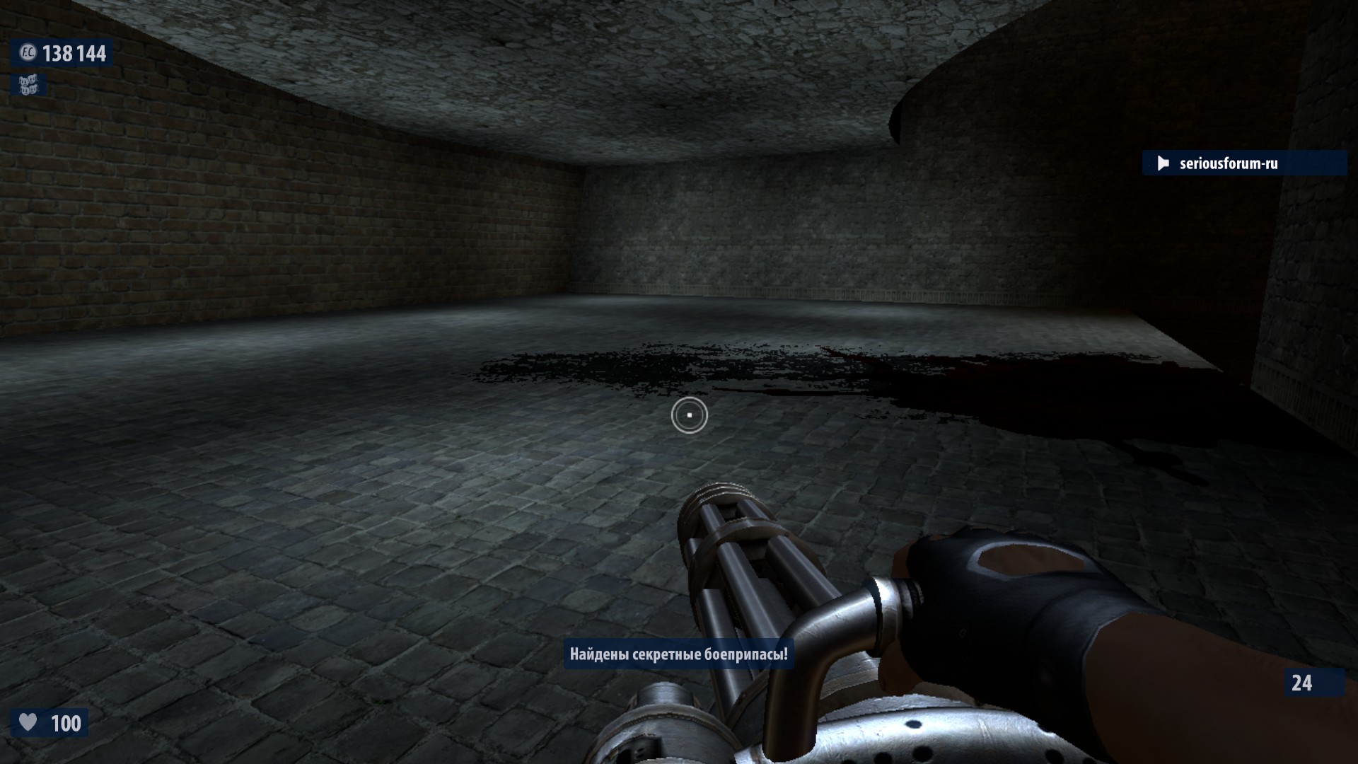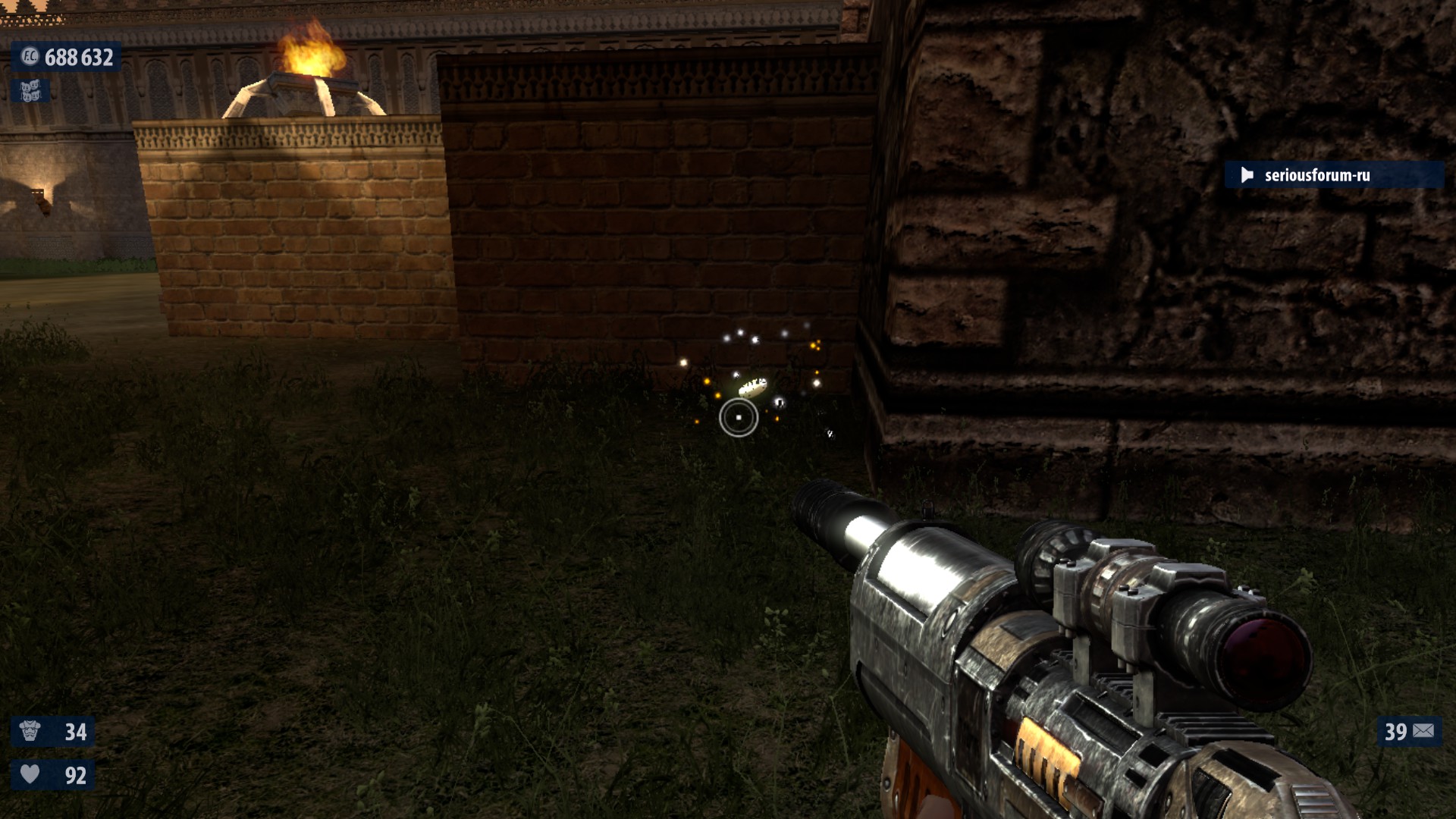 Церемониальный зал. Слева от выхода в нише имеются (патроны -1). Далее идем до пропасти. Справа под лестницей видно (сердце - 2). Но перед ним есть невидимый телепорт. Просто обходим его. После первого пролета спускаемся по лестнице – в нише есть (патроны - 3). Далее спускаемся на лифте вниз, где выстрелив в норку из ракетницы, вызываем (бычков - 4). Проходим все лестницы и пролеты. После крутого спуска поворачиваем налево за угол, за факел. Там трамплин выталкивает на выступ с (боезапасом - 5). Выходим к башне. Слева в стене есть башенка, стреляем в нее ,там (телепорт - 6) на студию, где есть броня и если все разнести кроме самого себя, то и сердце. В походе за третьей картой, около монолитной плиты в закутке есть темный квадрат, а там (бессмертие - 7). В следующей комнате таблетка и