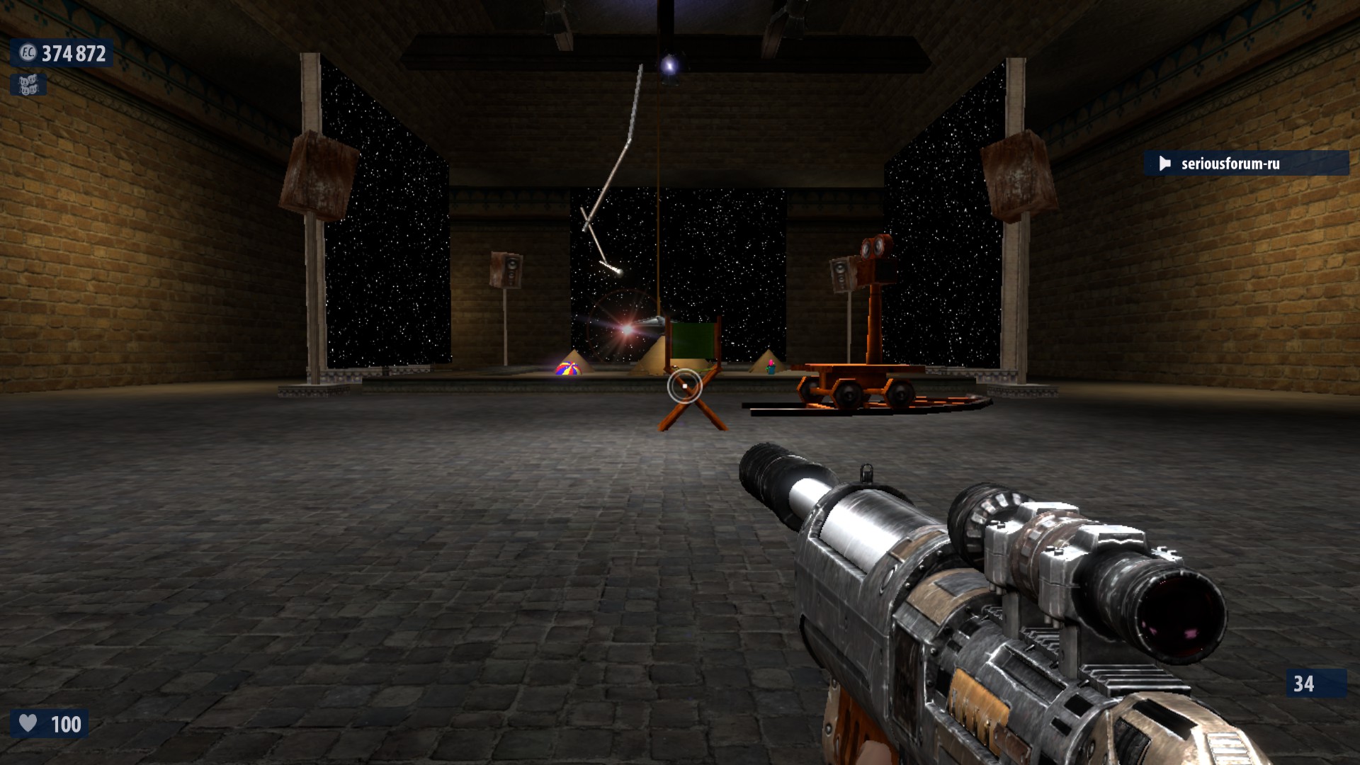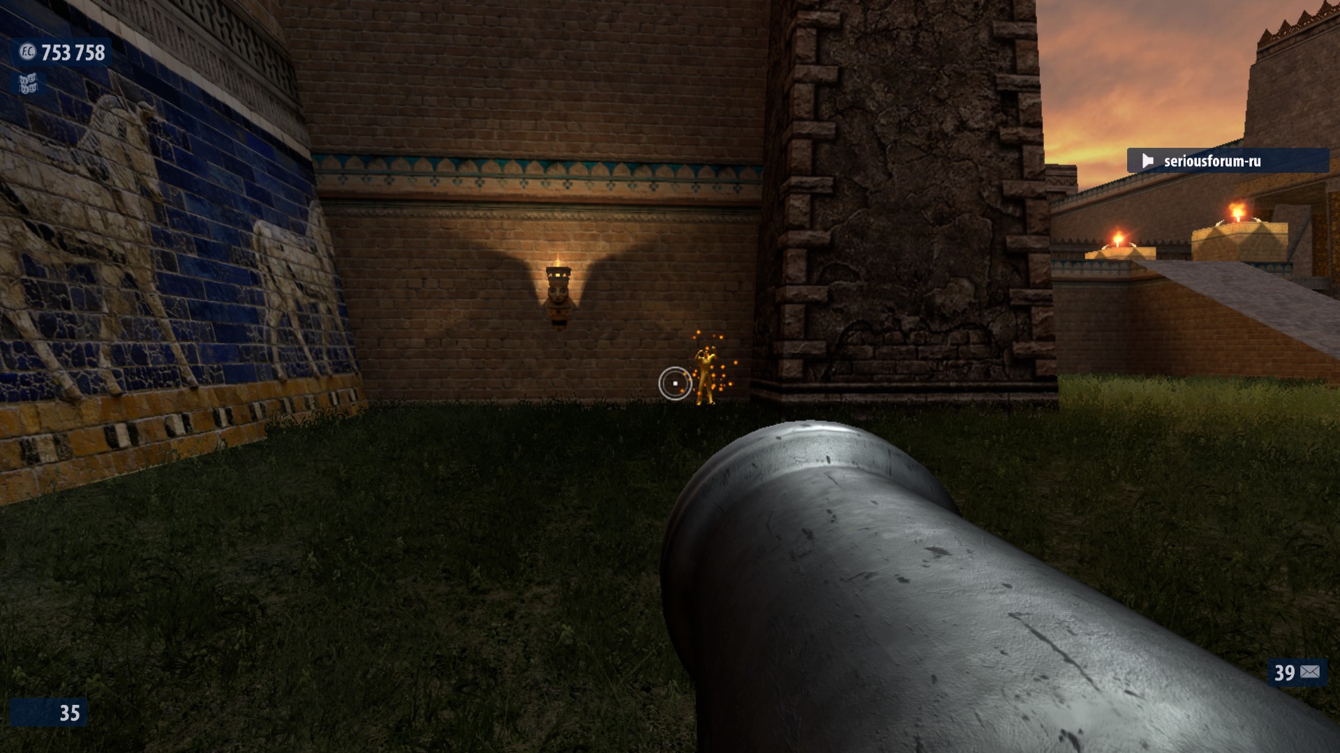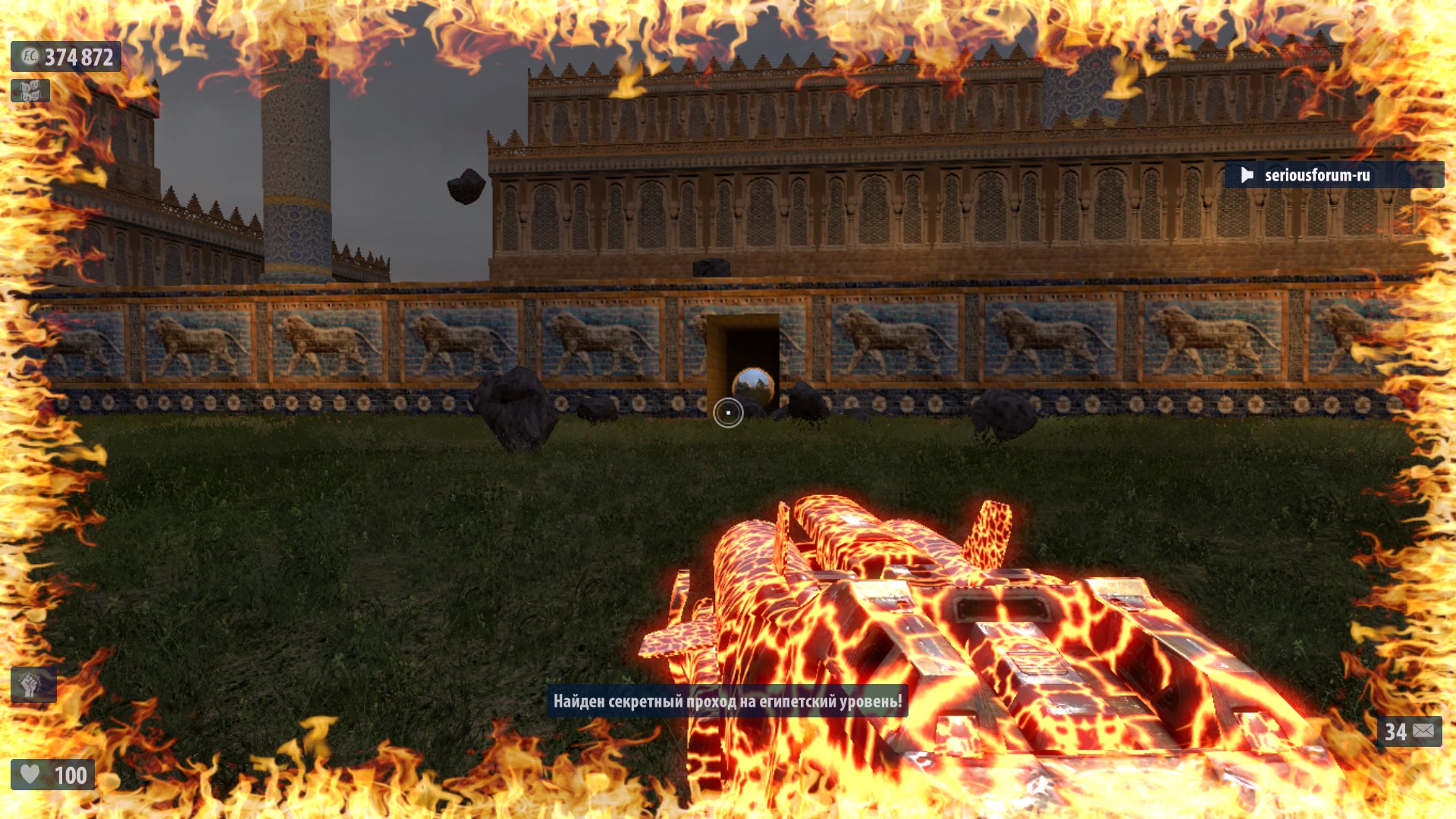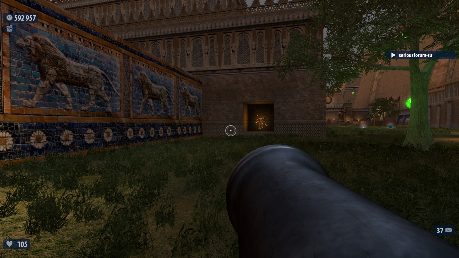 7. В левой части двора в стене периметра находится колонна в форме обелиска с высеченным на ней барельефом воина. Если смотреть на нее с определенной точки, глаза воина будут светиться ярким светом. Взорви колонну. За ней откроется «проход на съемки фильма о Египте». «Фильм» покажется знакомым.